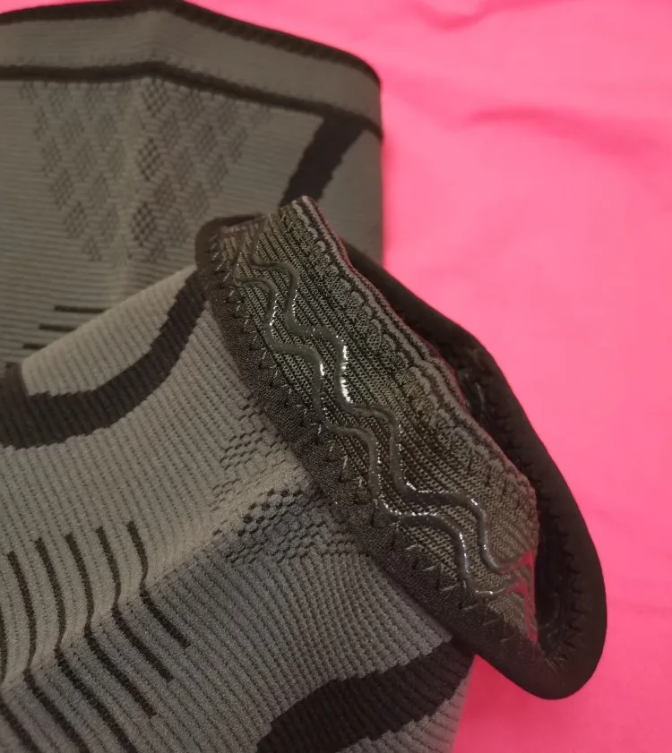 Качество отличное! С силиконовыми полосками, чтобы не сползали. Держит сустав отлично, 2.5 часа гуляли, я забыл про колени, жена пошутила, что я вперёд неё бегу , хотя раньше просил её не спешить! Советую и товар, и продавца!