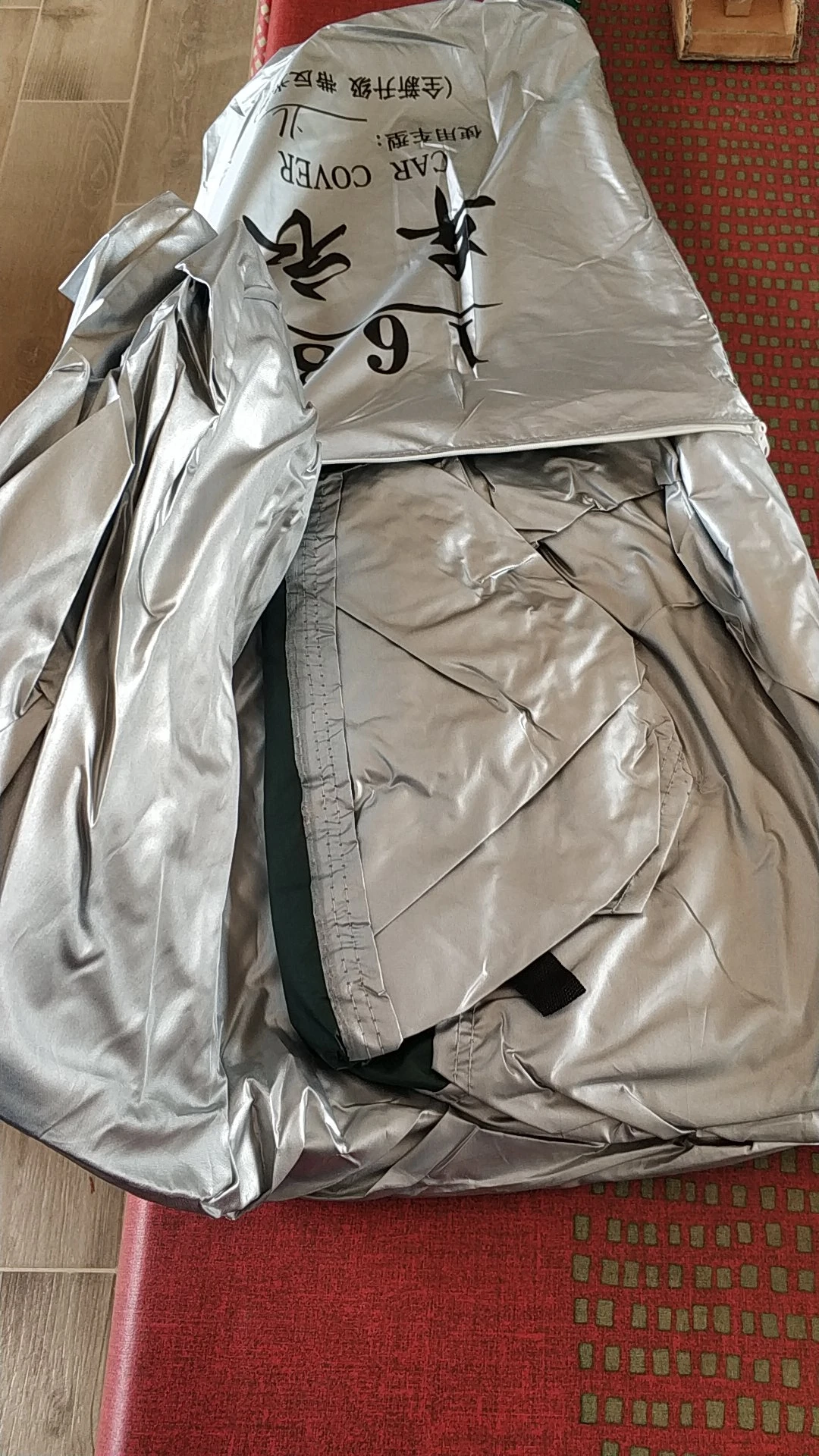 Чехол легкий, аккуратно сшит, упакован в сумочку с молнией, из такой же ткани. Красивый серебристый цвет, как у моей машины. Пока не примеряла - на улице идет снег, но думаю, что будет в пору. Описание точное. Продавец отправил товар сразу же после оплаты, но доставка затягивалась. Потому продавец продлил защиту товара. Товар кстати пришел в заявленные сроки. Качеством довольна, продавца рекомендую.