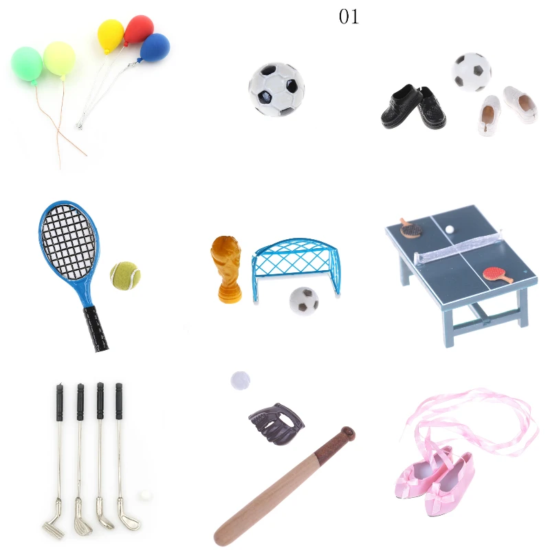 112 прекрасный кукольный домик спортивный миниатюрный теннисный мячФутболБейсболвоздушный шарклюшки для гольфабалетный Кукольный дом аксессуары