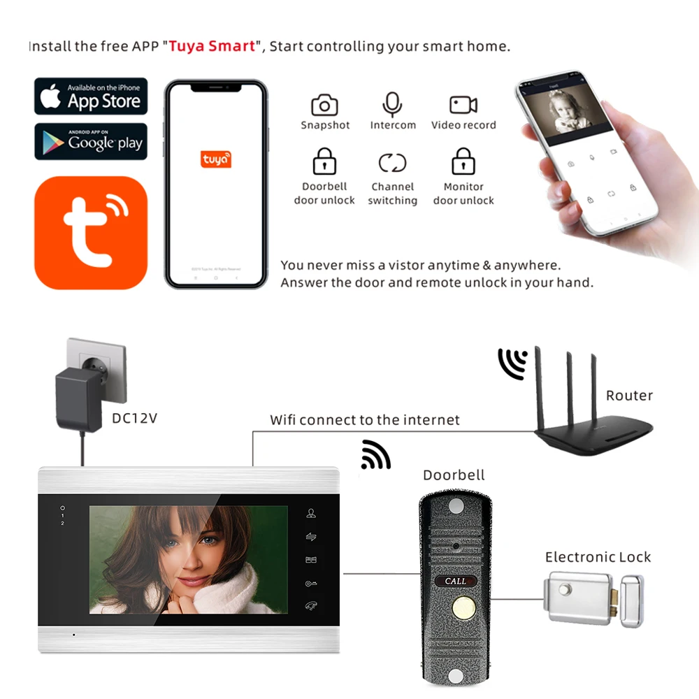 JeaTone Беспроводная домашняя видеодомофонная система 7 дюймов Wi-Fi видеодомофон для улицы с проводной 720PAHD 110 камерой дверного звонка