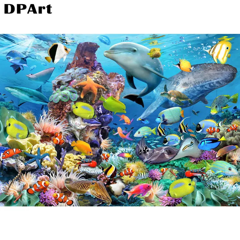 Алмазная картина 5D полностью квадратнаякруглая дрель морской мир дельфин рыба Daimond вышивка крестиком Мозаика картина M862