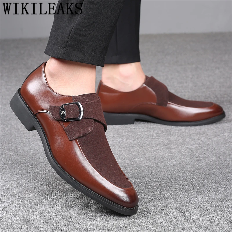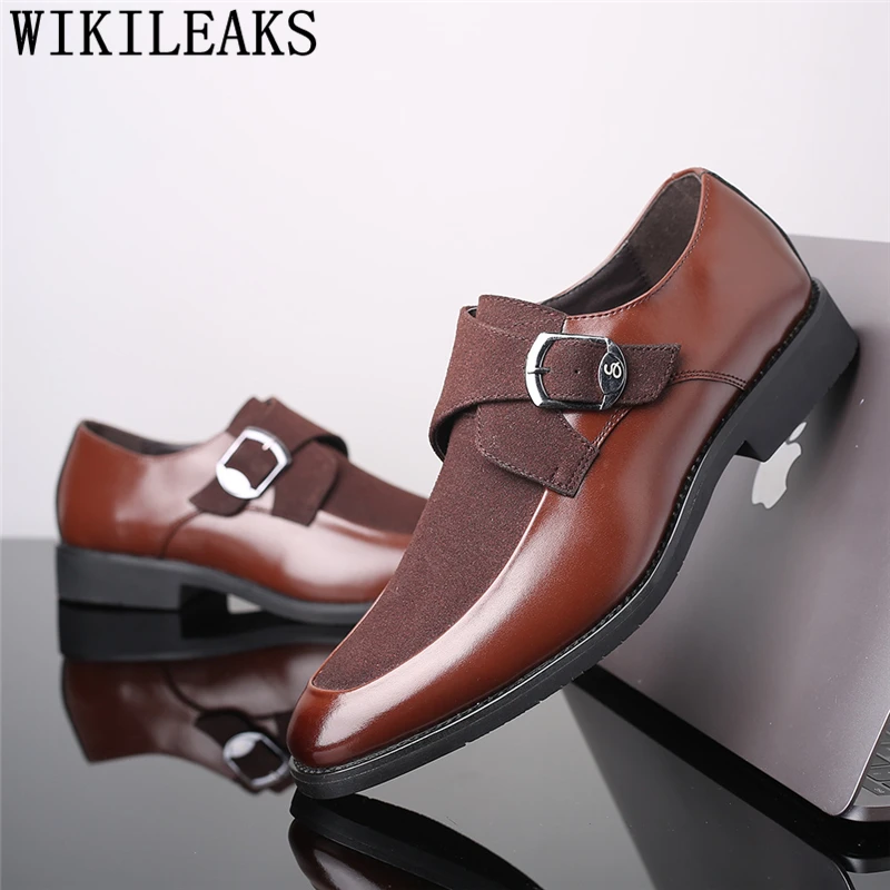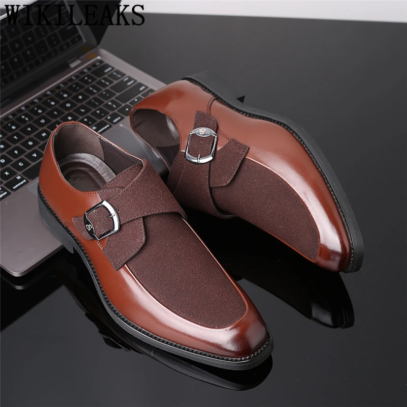 Мужские деловые туфли с ремешком монах, коричневые классические туфли в итальянском стиле под платье, большие размеры