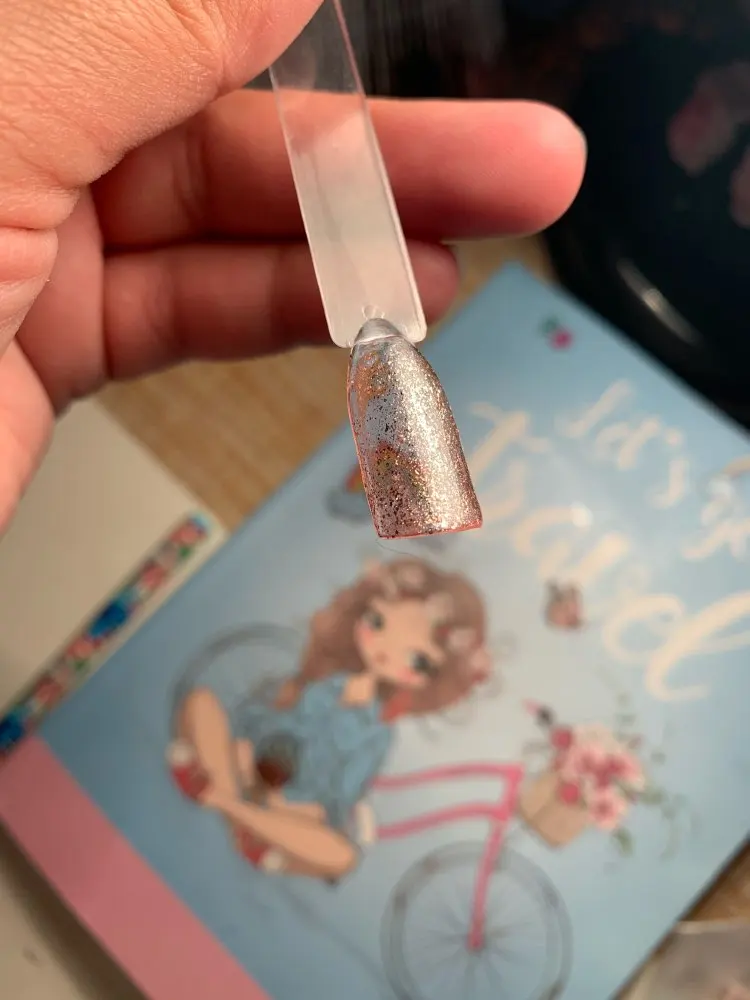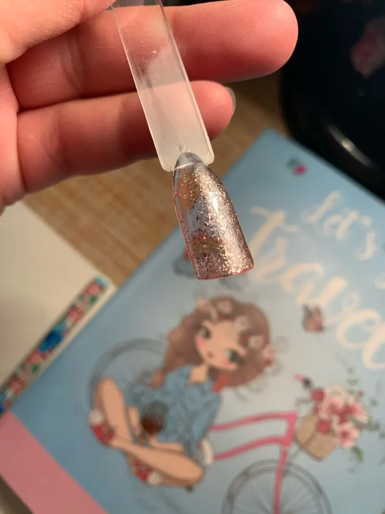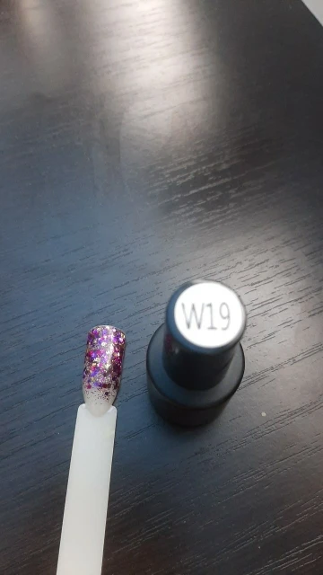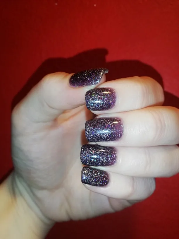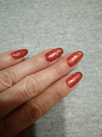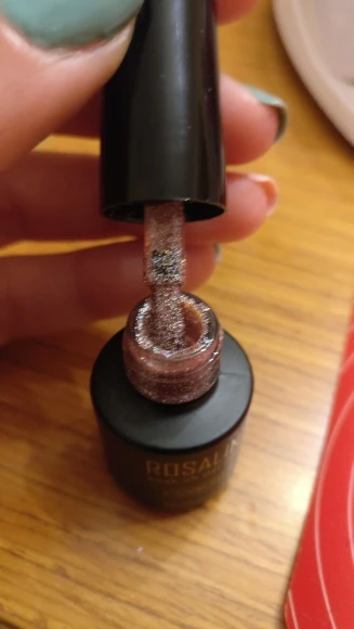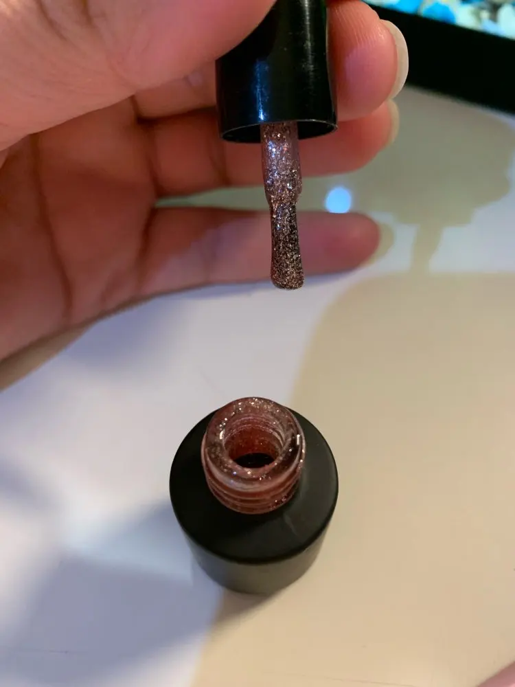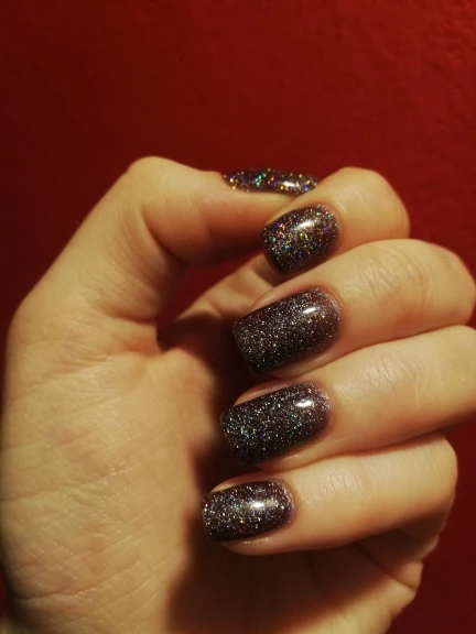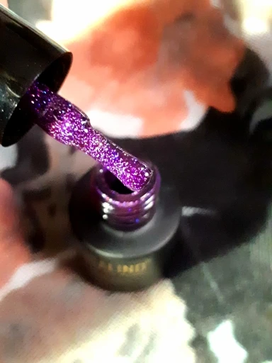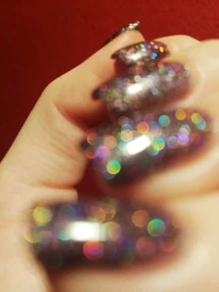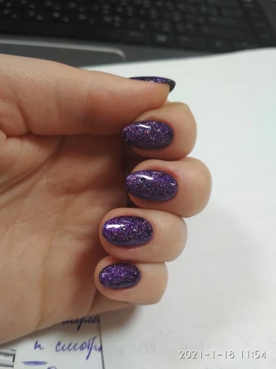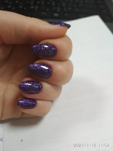 Очень красивый лак. Мелкие блёстки. Блестят нереально красиво. 2-3 слоя нужно. Спасибо продавцу.