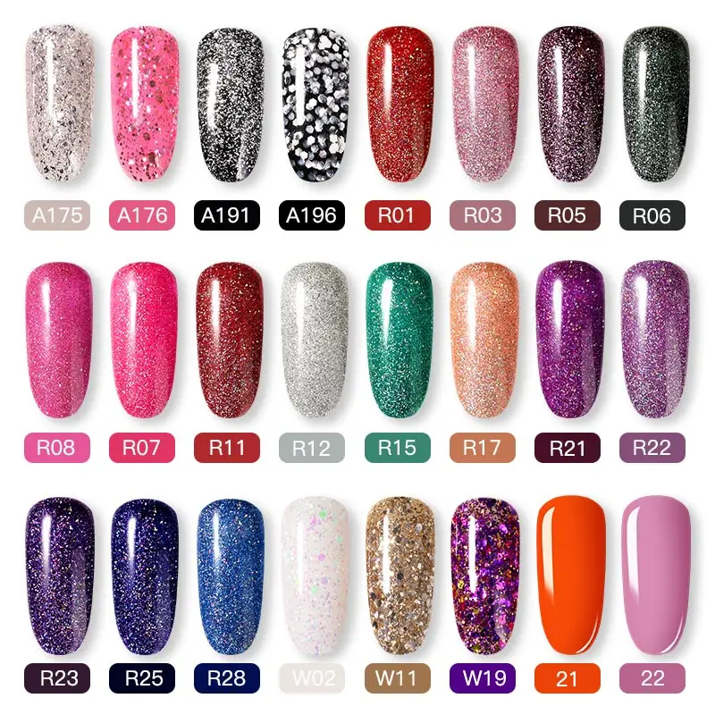 Купил R23 и R25. На самом деле это обычный лак с блестками, но все равно отлично. Пигментация нормальная, но лучший эффект, который вы получите с черной основой под двумя слоями этого полира. Бутылки из стекла и выглядят довольно красиво. Рекомендовано.