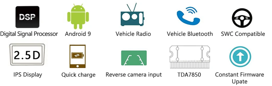 Поддержка внешнего автомобиля-Play,Andriod Auto,DAB +,Bluetooth,OBD2, камера заднего вида, USB DVR