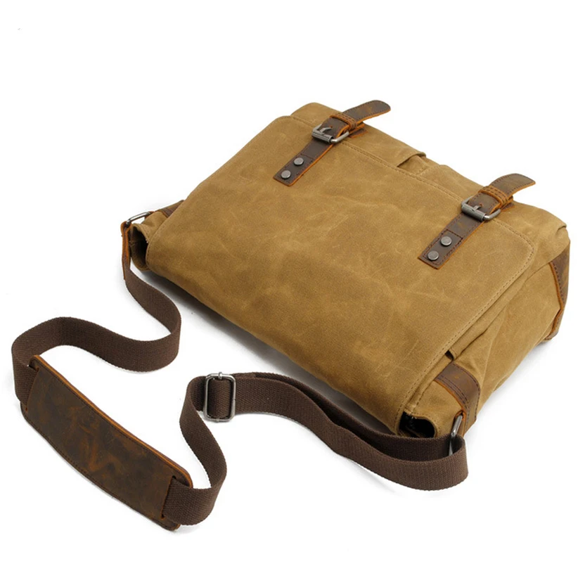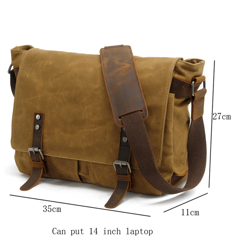 Мужская сумка-мессенджер, водонепроницаемая холщовая кожаная Винтажная сумочка, большая ранец на плечо, портфель для ноутбука 14 дюймов