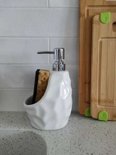 Упаковали отлично,приехал целый. Довольно большой диспенсер. Место для губки маловато, особенно в сравнении с самим диспенсером.