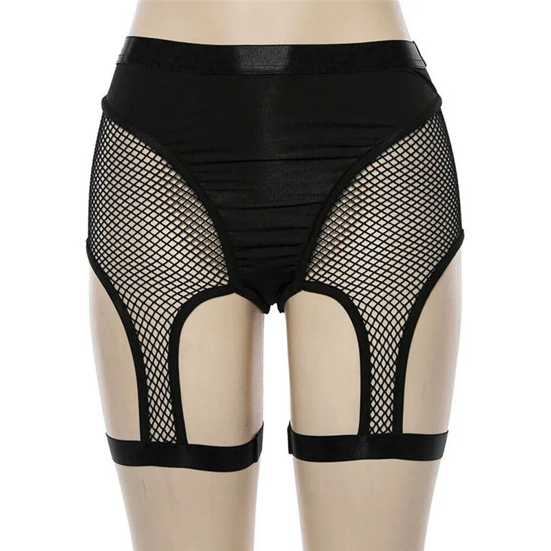 Сексуальные женские сетчатые шорты, трусики, ажурные сетчатые шортики с высокой талией, подтяжки, нижнее белье, подвязки, нижнее белье