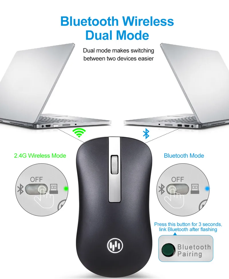 Беспроводная мышь Bluetooth компьютерная мышь геймер Бесшумная мышь перезаряжаемая эргономичная мышь беспроводной Тип C USB адаптер для ПК ноутбука