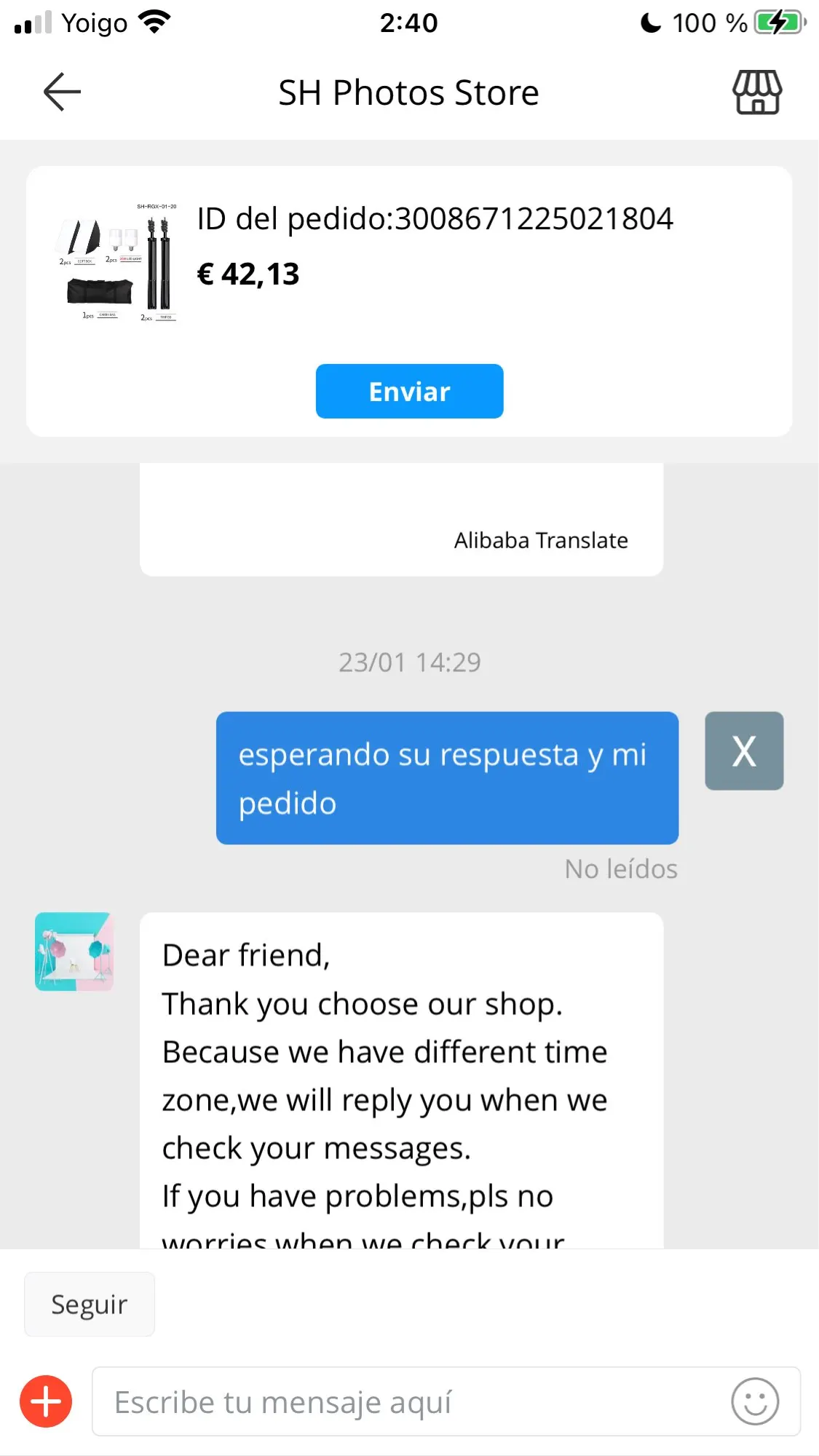 Я не получил заказ с доставкой в течение 3 дней из Испании.
