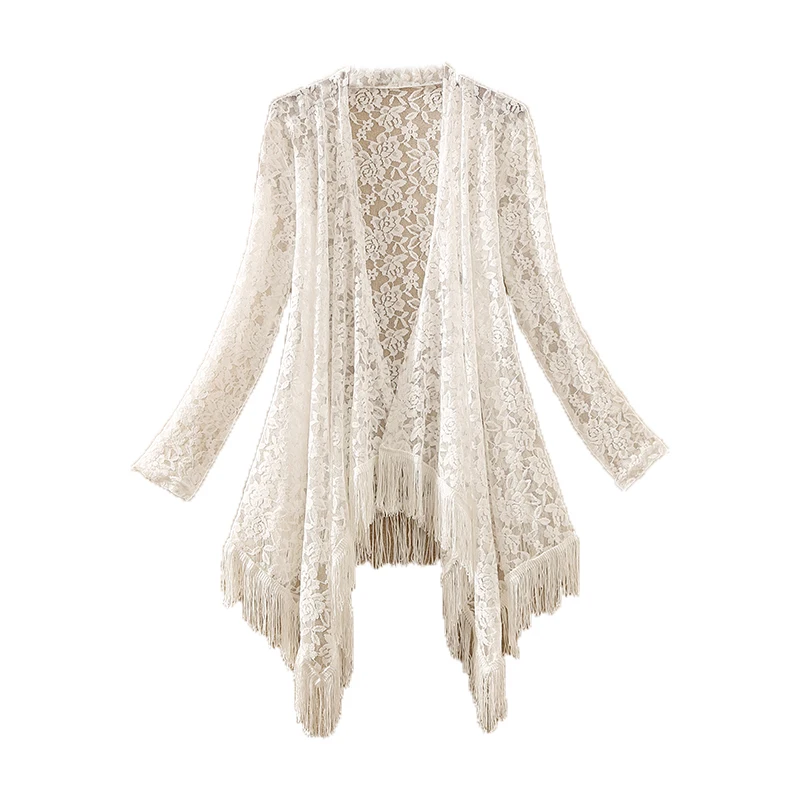 Женский кружевной жакет с асимметричным подолом, Повседневная Верхняя одежда средней длины с кисточками, тонкий размера плюс кардиган, верхняя одежда, лето 2019