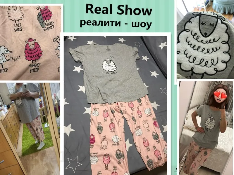 Пижама соответствует описанию, брала для дочери на рост 166 и размер 44 -S, все подошло. Брюки по длине- капри. Поставила оценку 4 звезды, потому что, был небольшой брак на шве в шаге. Товар возращать не буду, слишком хлопотно, дырку зашью.