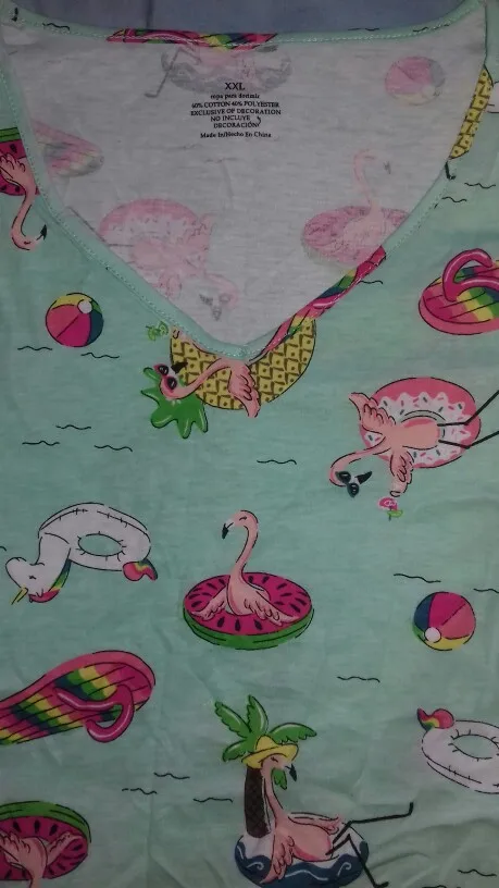 Пижама классная. Ткань действительно хлопок, никакого постороннего запаха, швы хорошие. Точно как на картинке только ярче. Довольна покупкой. XXXL гдето на наш 54. Покупала маме в подарок, взяла на размер больше, что бы свободно сидела. Трек отслеживался. Спасибо продавцу.
