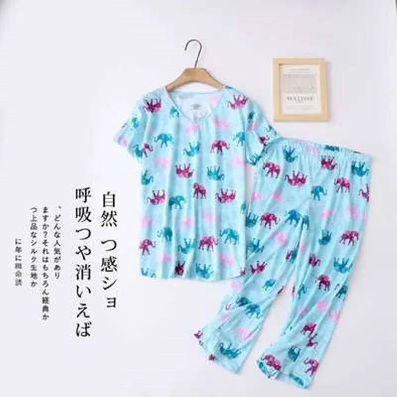 Пижама женская, хлопковая, с коротким рукавом, 2 шт.компл.