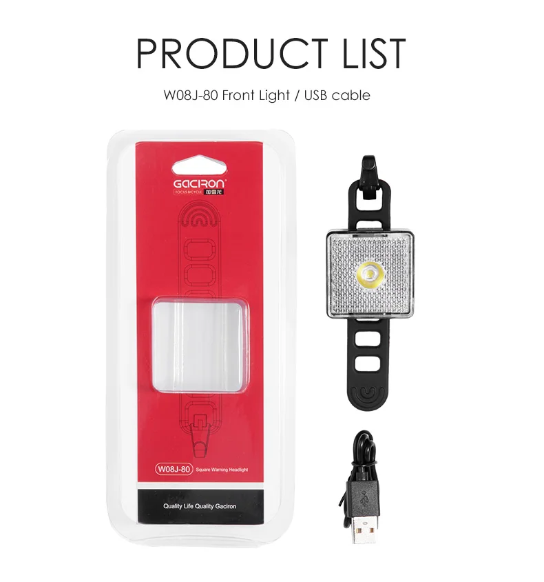 Фонарь велосипедный GACIRON, светодиодный, с зарядкой от USB, 80 Лум