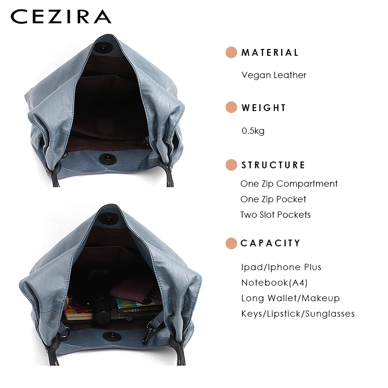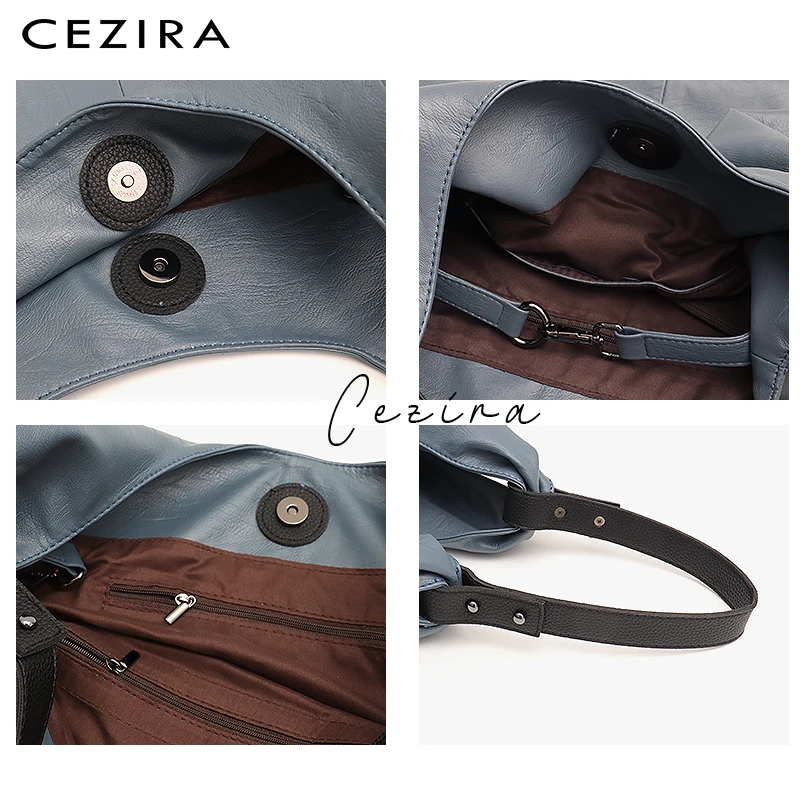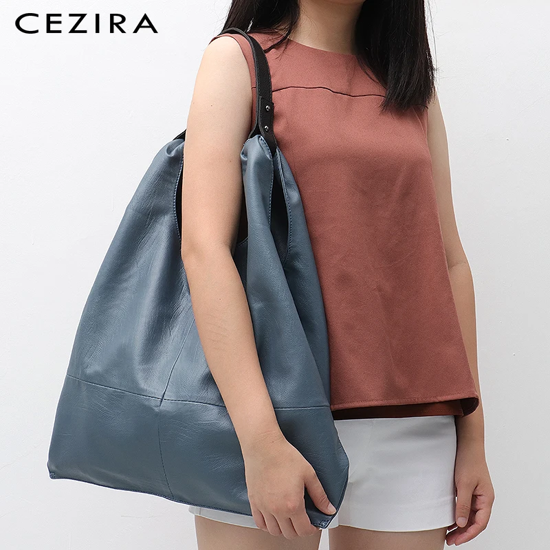 CEZIRA модные большие сумки через плечо, женские веганские кожаные сумки Hobo, мягкие высококачественные повседневные Дамские Сумки из искусственной кожи с ручками, сумки для шоппинга
