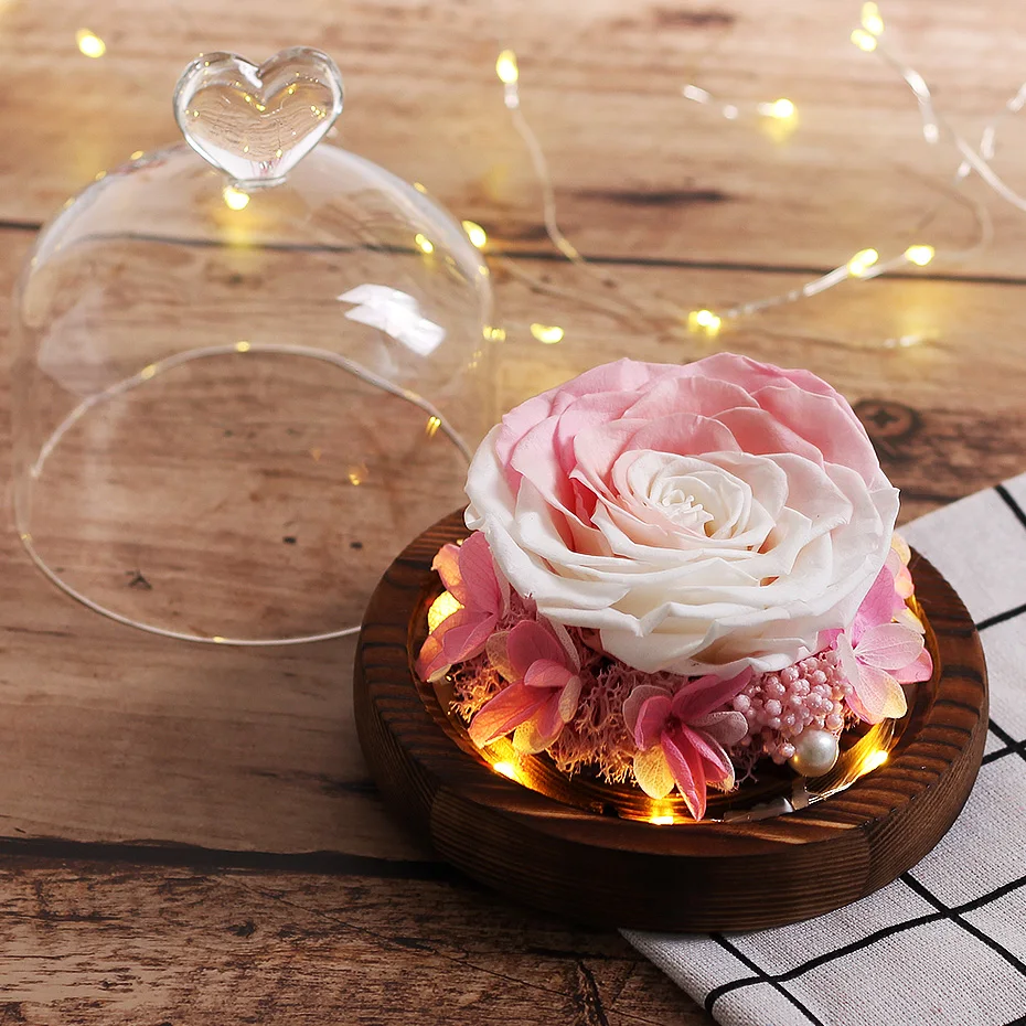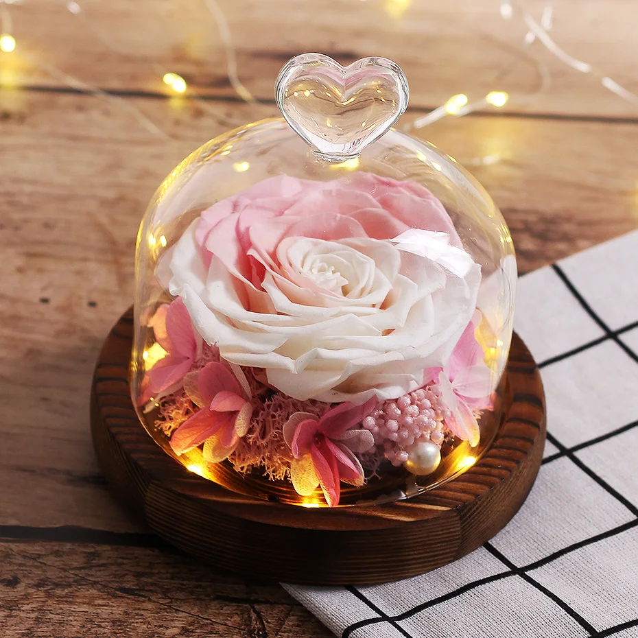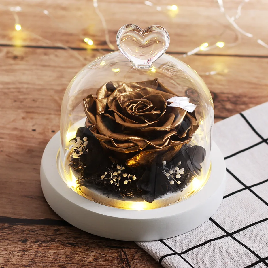 Натуральная вечная роза в стеклянном куполе, сушеные цветы Красавица и чудовище, подарок на день рождения, День Святого Валентина, свадьбу, для домашнего декора