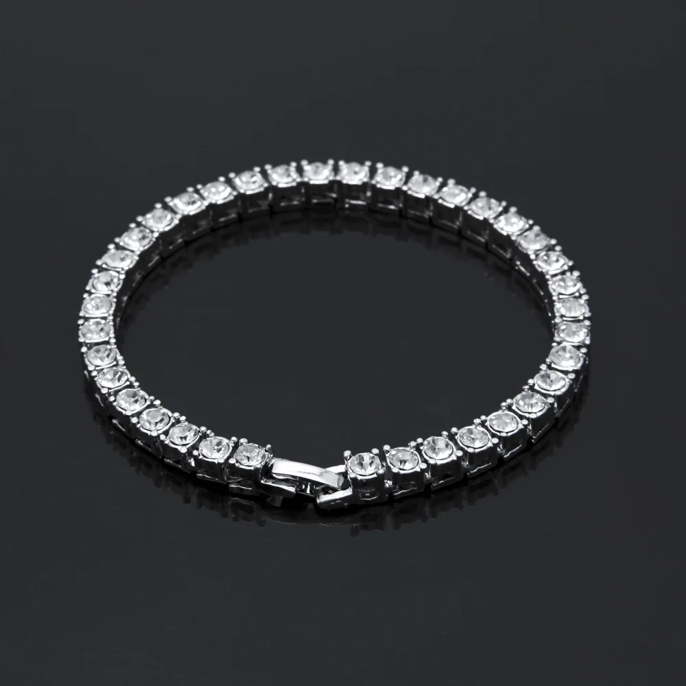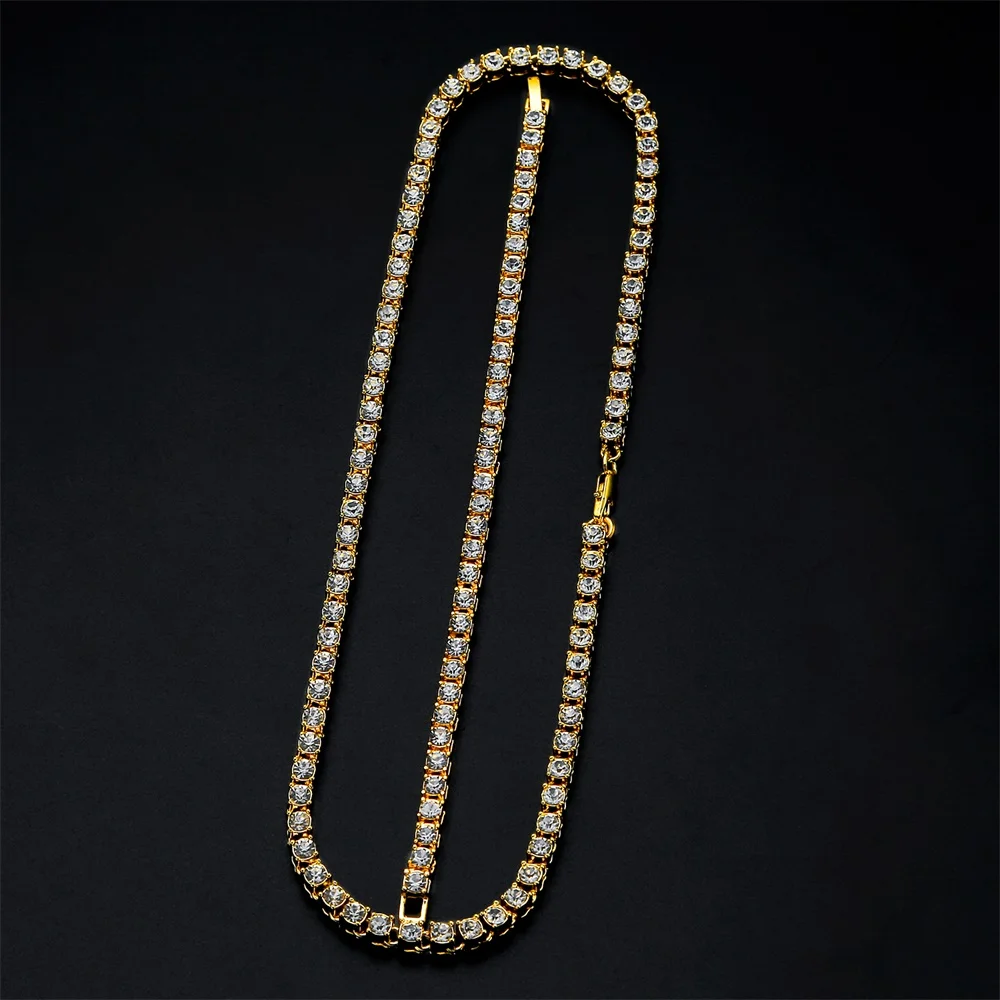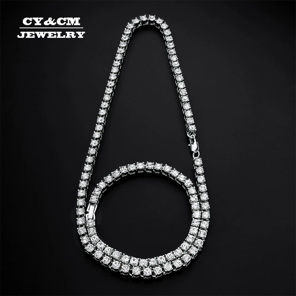 Хип-хоп ожерелье, сверкающие стразы, цепочка на шею для мужчин, ширина 5 мм, серебристый цвет, 1 ряд, теннисные цепи, ожерелья, браслет