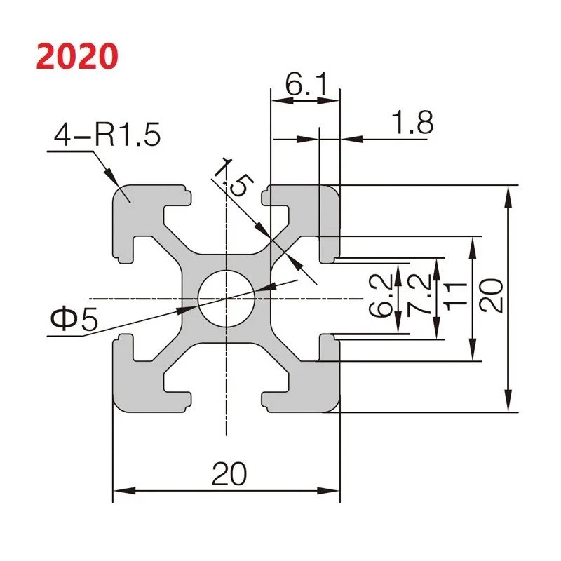 Алюминиевый профиль 2020, 6 мм, Т-образный слот, 2020, алюминиевый профиль, анодированный, 100, 200, 300, 400, 500, 600, 800 мм, CNC, запчасти для 3D-принтера 1 м