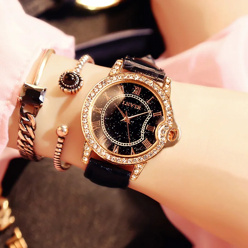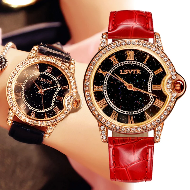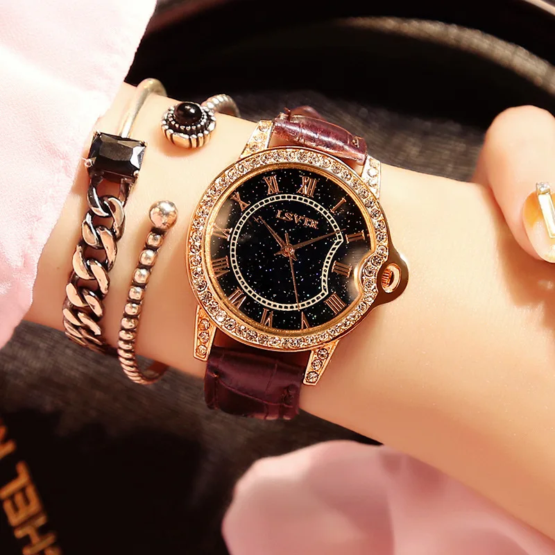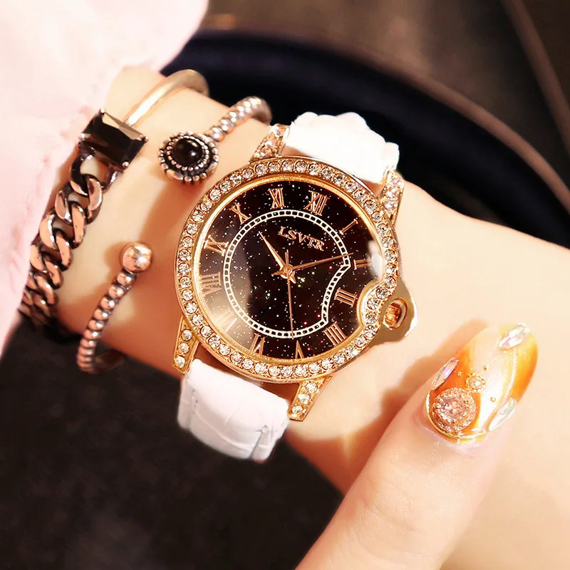 Аристократические женские часы, новинка 2019, женские часы в европейском и американском стиле, Кварцевые водонепроницаемые женские часы со звездным лицом и бриллиантами