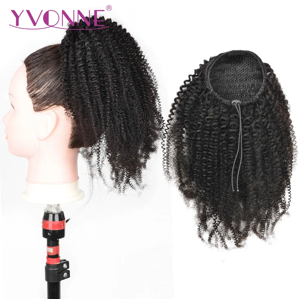 Yvonne 4B 4C кудрявые косички на шнурке конский хвост человеческие волосы с высоким коэффициентом бразильские натуральные волосы для наращивания на заколках