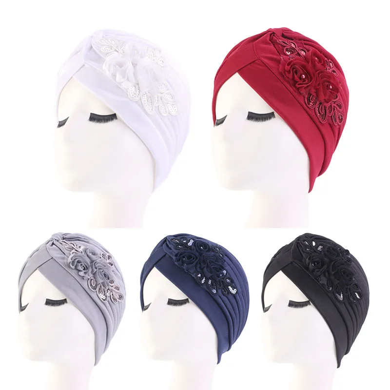Женская шапочка с пайетками, элегантная мусульманская шапочка для химиотерапии, тюрбан, тюрбан с цветком