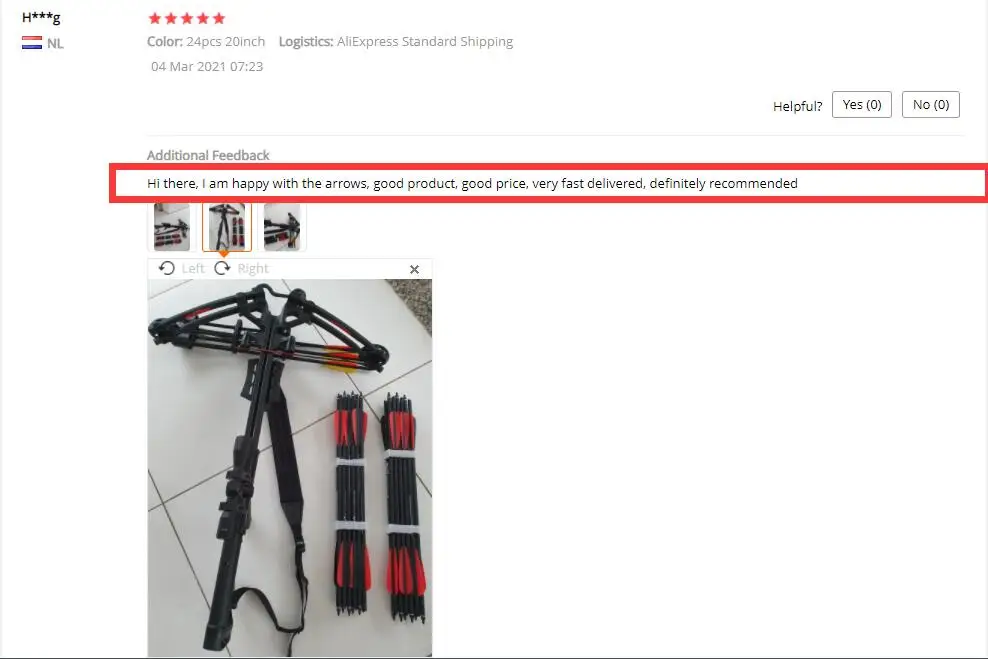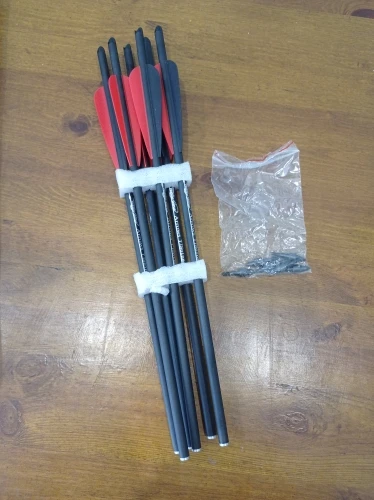получил все очень быстро ,стрелы проверил - из 12 шт 10 отличные, 2 есть нюансы.все остальное будет ясно в процессе эксплуатации. всем доволен. P.S- почему то есть люди которые ноют что наконечники не вкручены с завода - не понимаю почему это является проблемой для людей.