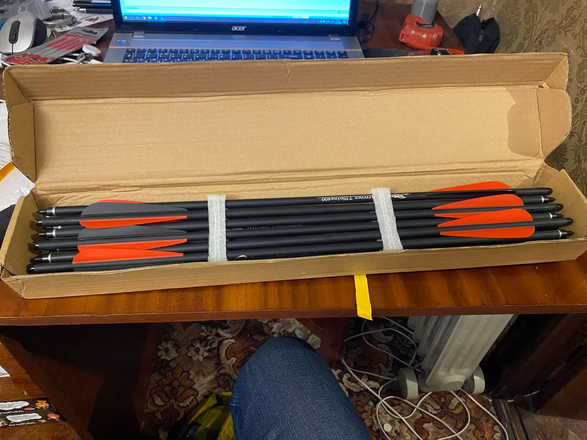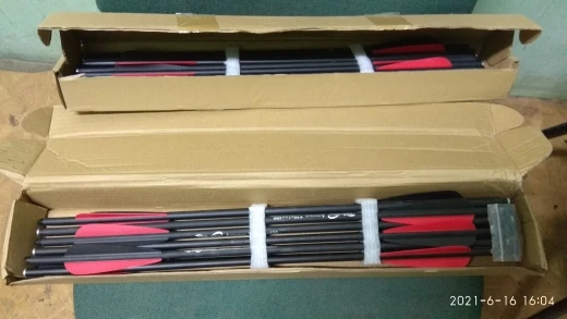 коробка пришла вся мятая, но стрелы целые. вроде нормальные,но пока не испытывал.