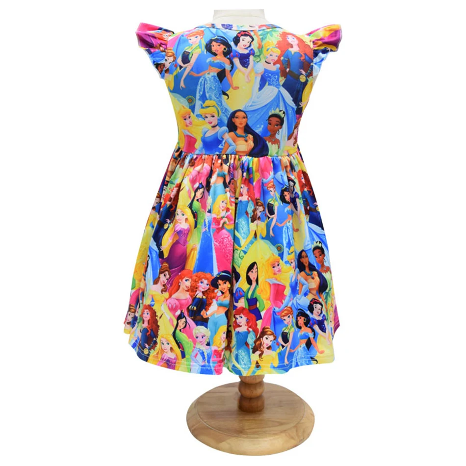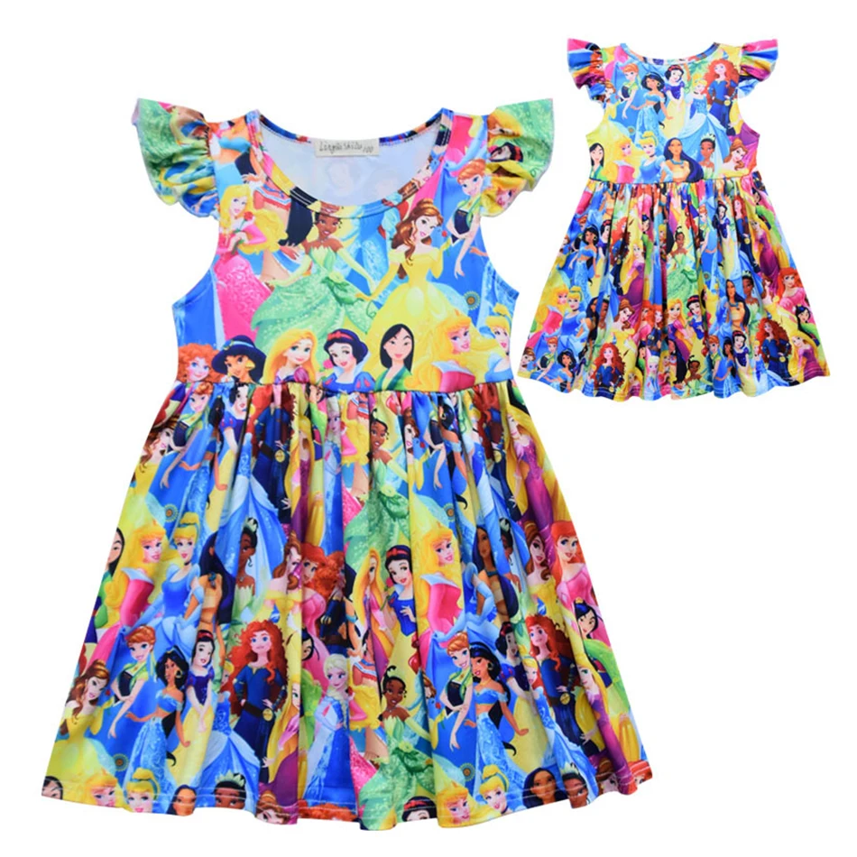 Платье с изображением единорога, цветов, Микки, динозавра, феи, принцессы, Белоснежка, жасмин, Белль, Эльза, одежда с принтом, летающие рукава, платья
