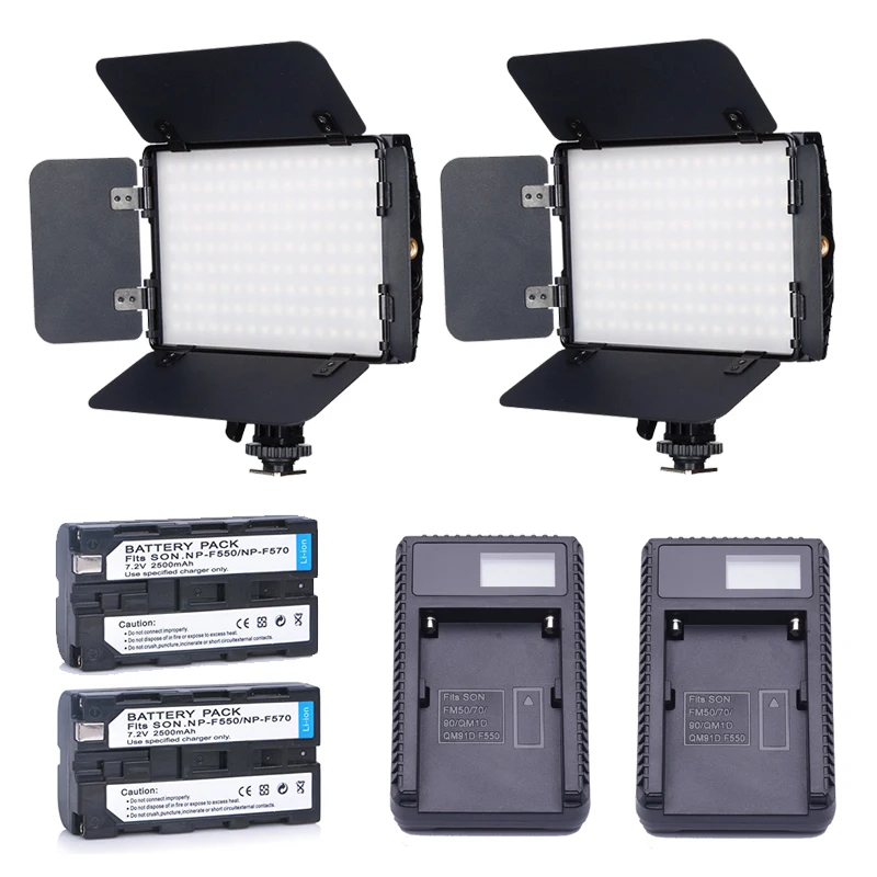 2 шт., Двухцветные светодиодные лампы для фотосъемки, с аккумулятором и зарядным устройством