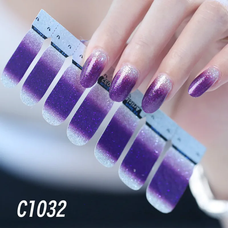 Наклейки для ногтей, с блестками, градиентные цвета, 1 лист