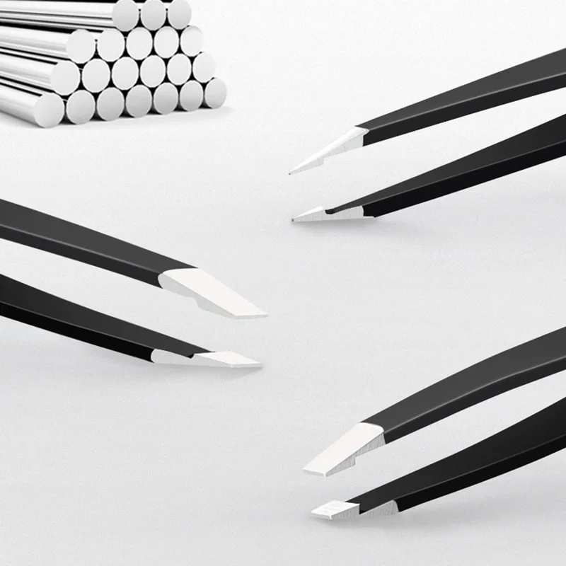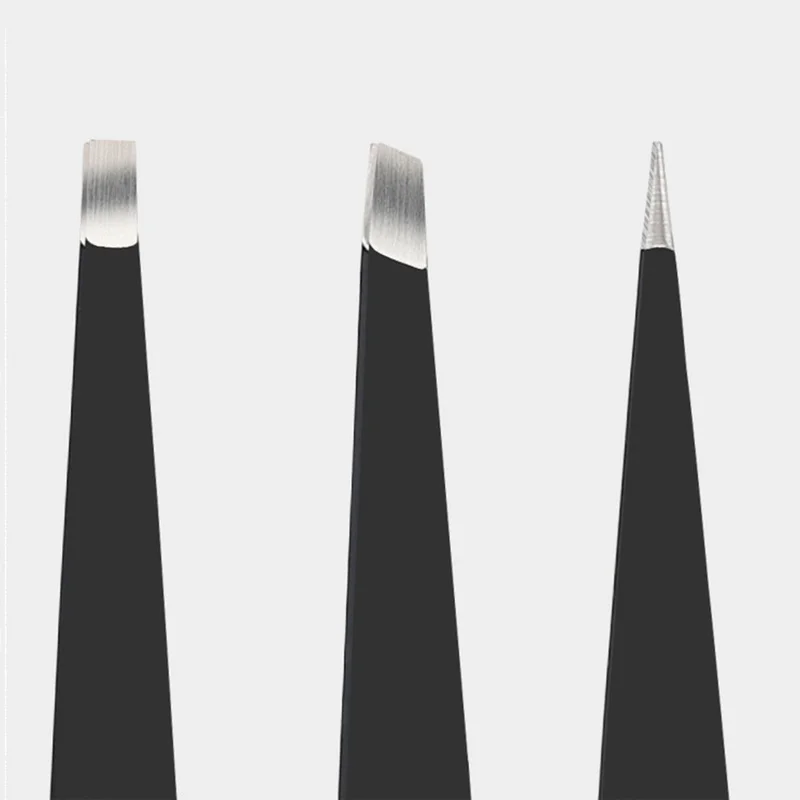 Профессиональный пинцет для бровей 3 шт.набор, наконечник из нержавеющей сталикосый наконечникплоский наконечникволосы снятие макияжа, набор инструментов с чехлом и футляром