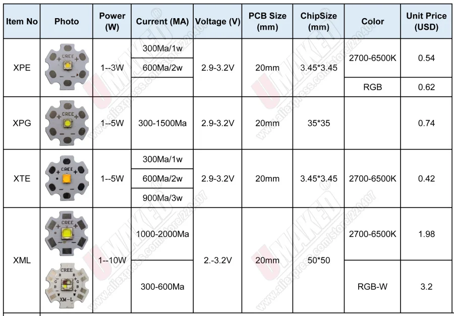 Теплый светодиодный чип CREE XML XPE XPG XTE, 3 Вт, 5 Вт, 10 Вт, белый светодиод RGB высокой мощности на печатной плате 20 мм