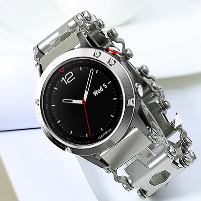Название продукта: многофункциональный браслет для часов Цвет: черный/серебристый 26 мм для Garmin Fenix 3/Fenix 3 HR/Fenix 5X 22 мм для Samsung gear S3/Galaxy Watch 46 мм/фигурка Garmin Fenix/huawei GT GT2 Длина: 230 мм Легко устанавливается: Да Материал: нержавеющая сталь Упаковочный лист: Часы для кольца * 1 шт. (часы в комплект не входят)