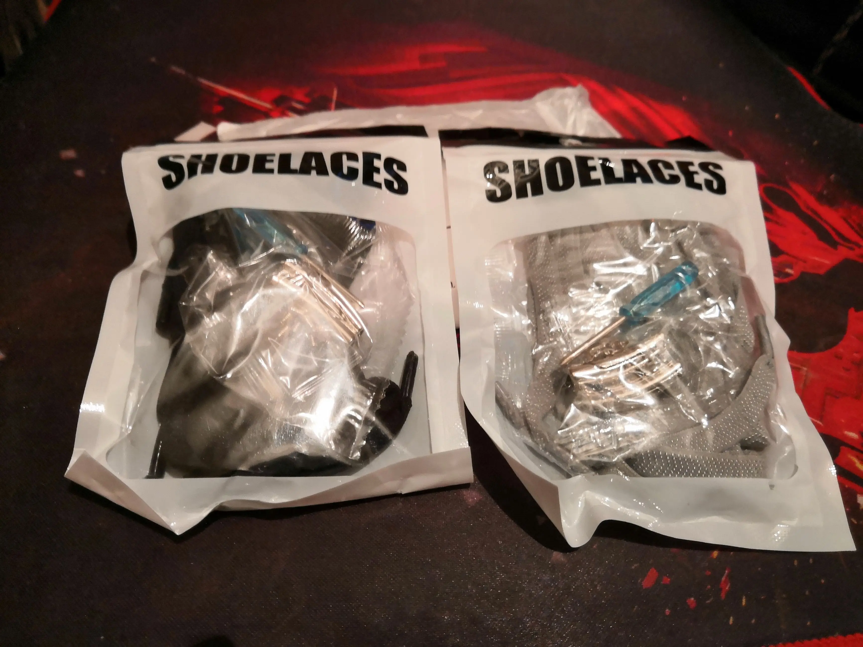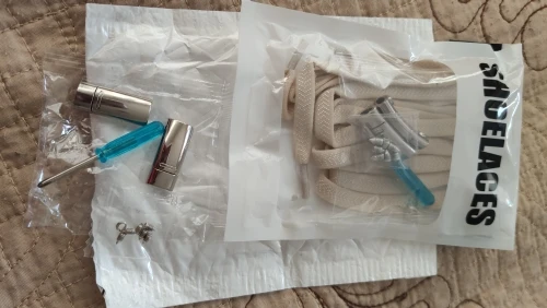 Товар пришел в Пермь быстро, трек отслеживался.В комплекте идут: сами шнурки (как будто резиновые-тянутся хорошо), маленькая отверточка, саморезики 7шт и магнитные застежки. Всё целое, магнитики относительно крепкие-думаю со своей задачей должны справиться.