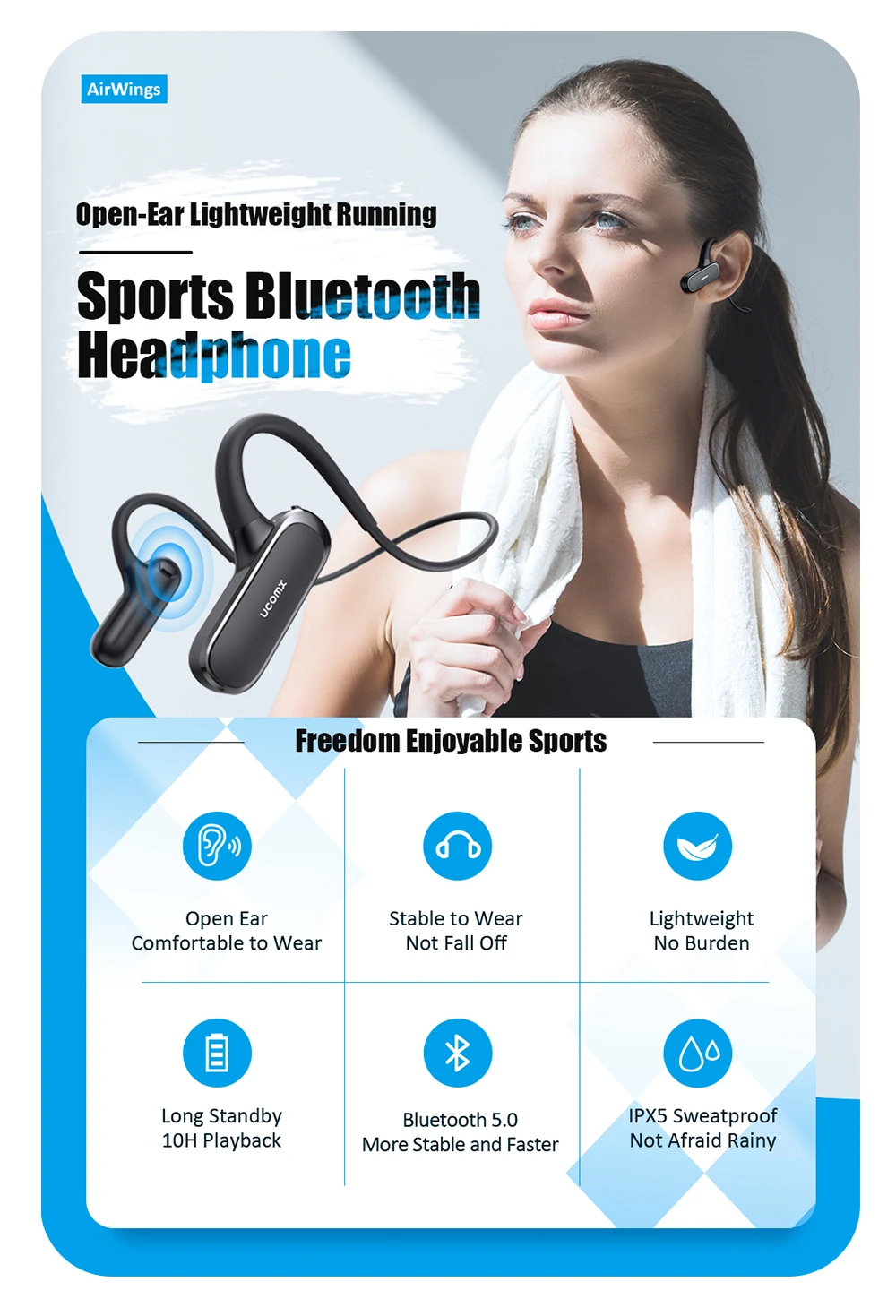 Спортивные Bluetooth-наушники UCOMX G56, беспроводные наушники с открытым ухом, 10 часов воспроизведения, для Android, iOS, для бега