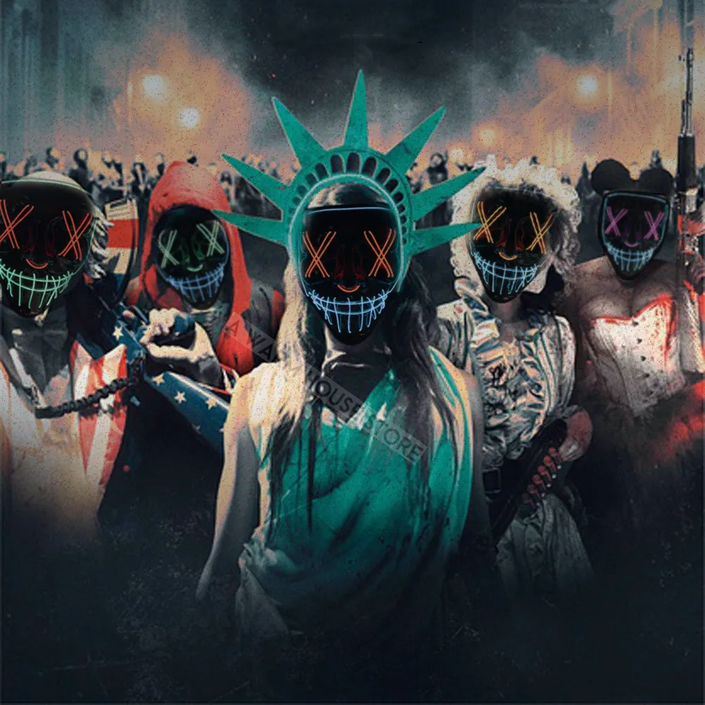 Светодиодный маска для Хэллоуина, неоновые маски, светится в темноте маски, маски для вечерние, ужасные маски, страшные маски, Карнавальная маска, Легкая Маска