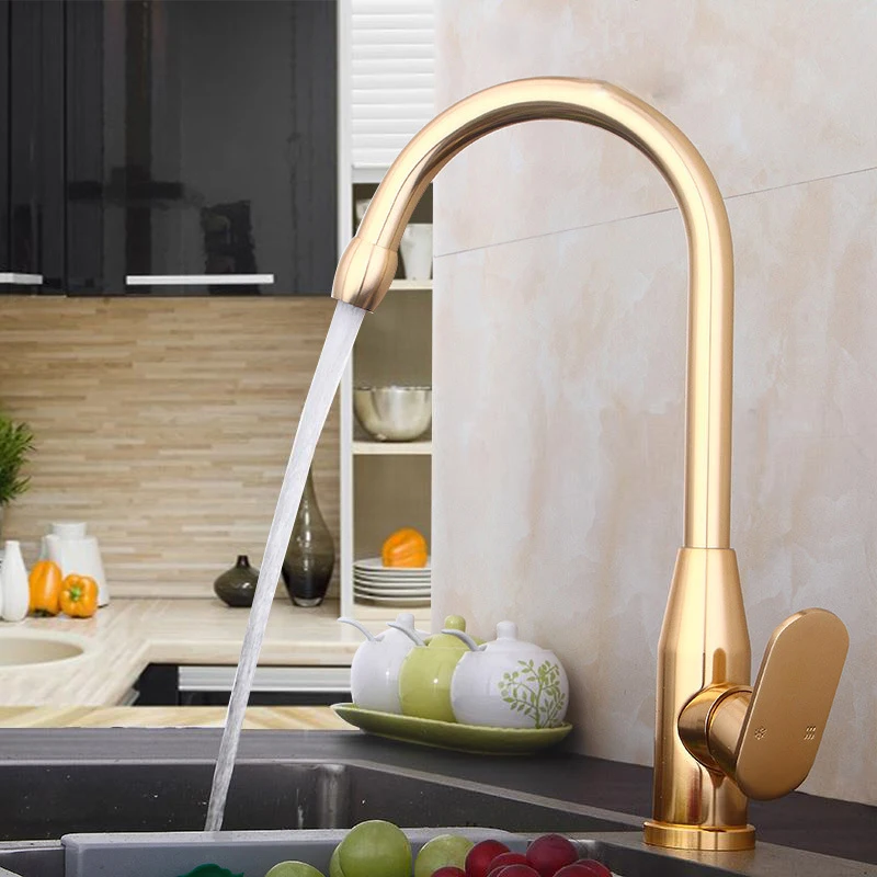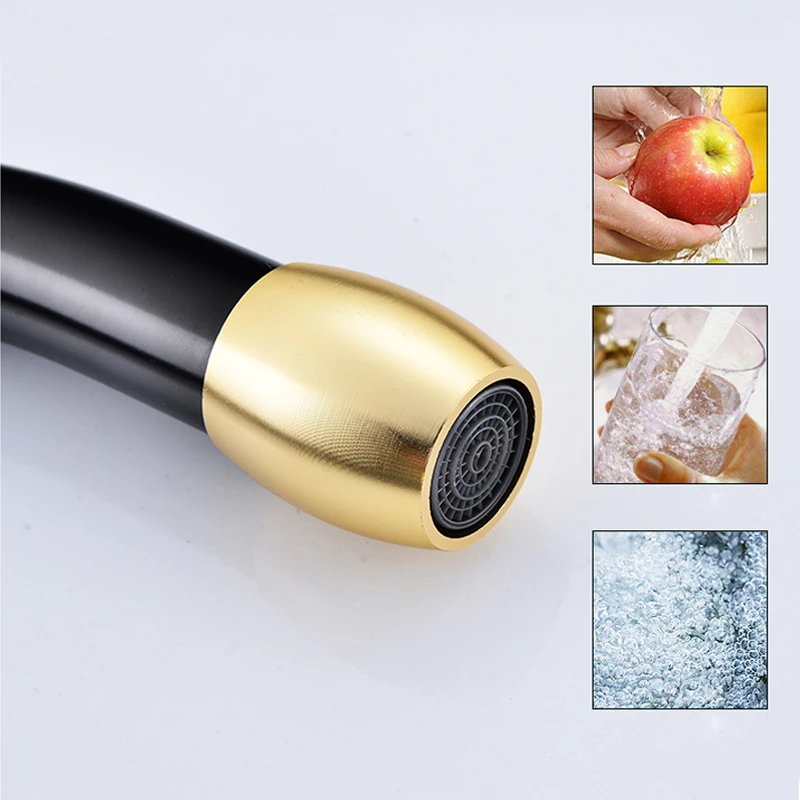 Смеситель для кухни, алюминиевый, золотой, с одной ручкой, для раковины, для горячей и холодной воды, поворот на 360 градусов