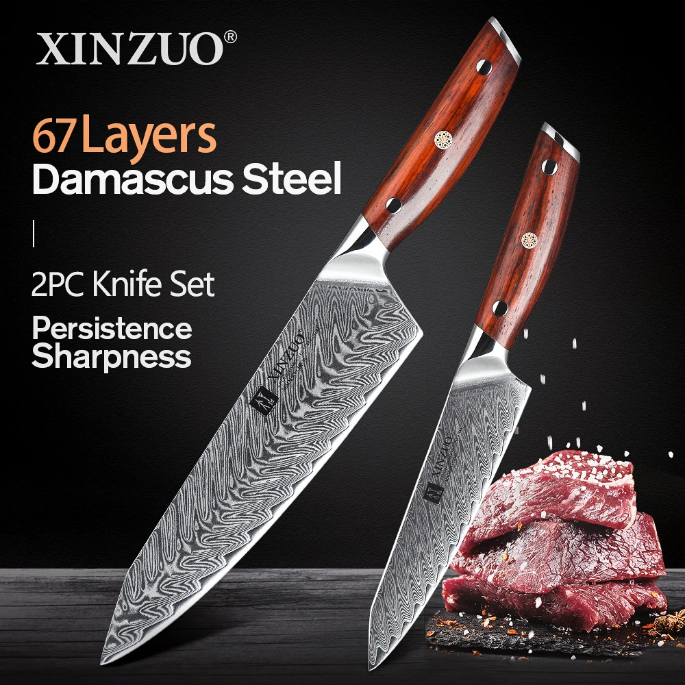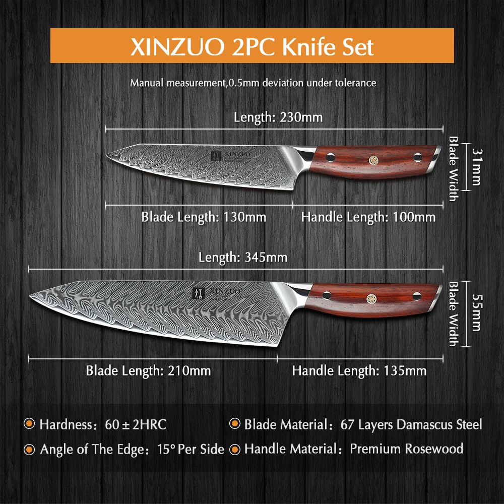 Набор кухонных ножей XINZUO из 2 предметов, японская высокоуглеродистая Дамасская сталь, Новое поступление, профессиональный универсальный кухонный нож шеф-повара 8,5 и 5 дюймов