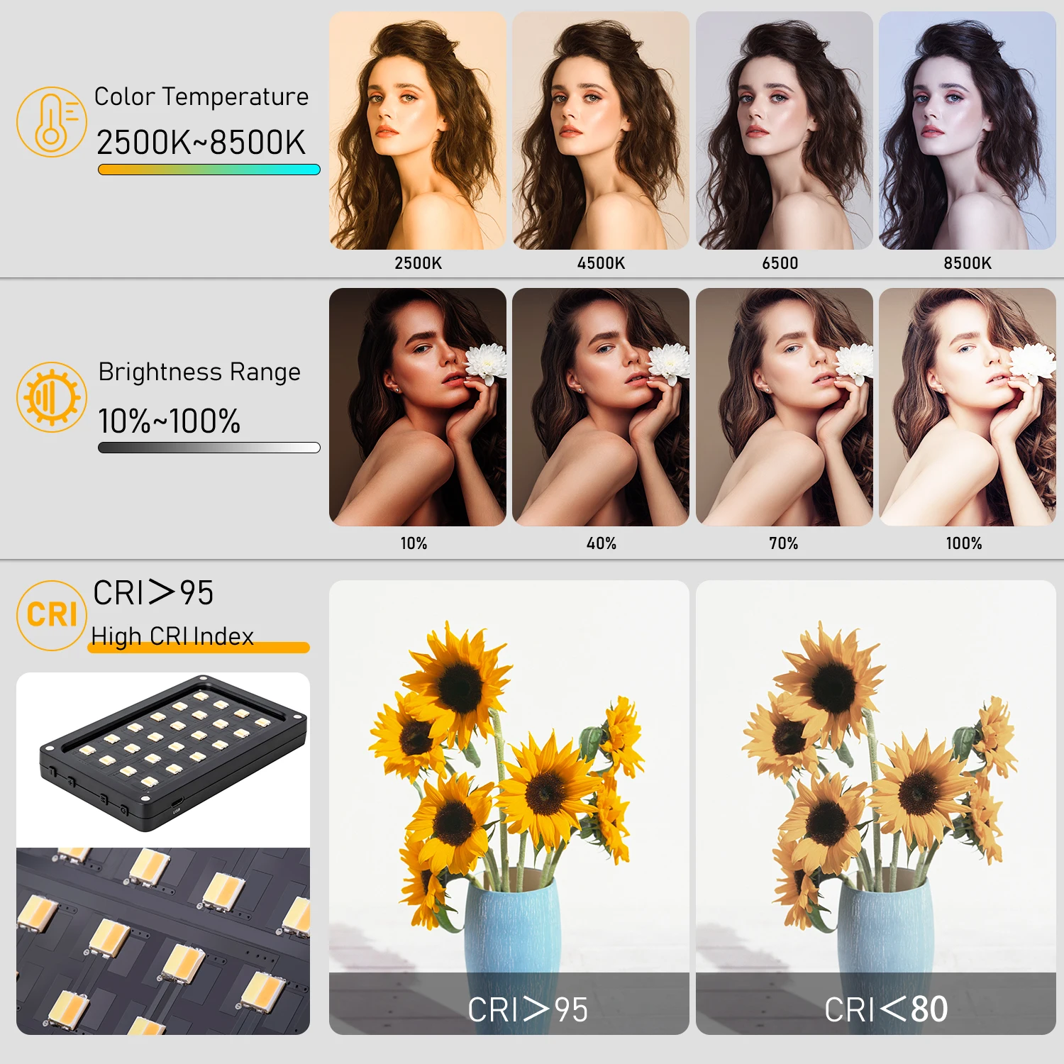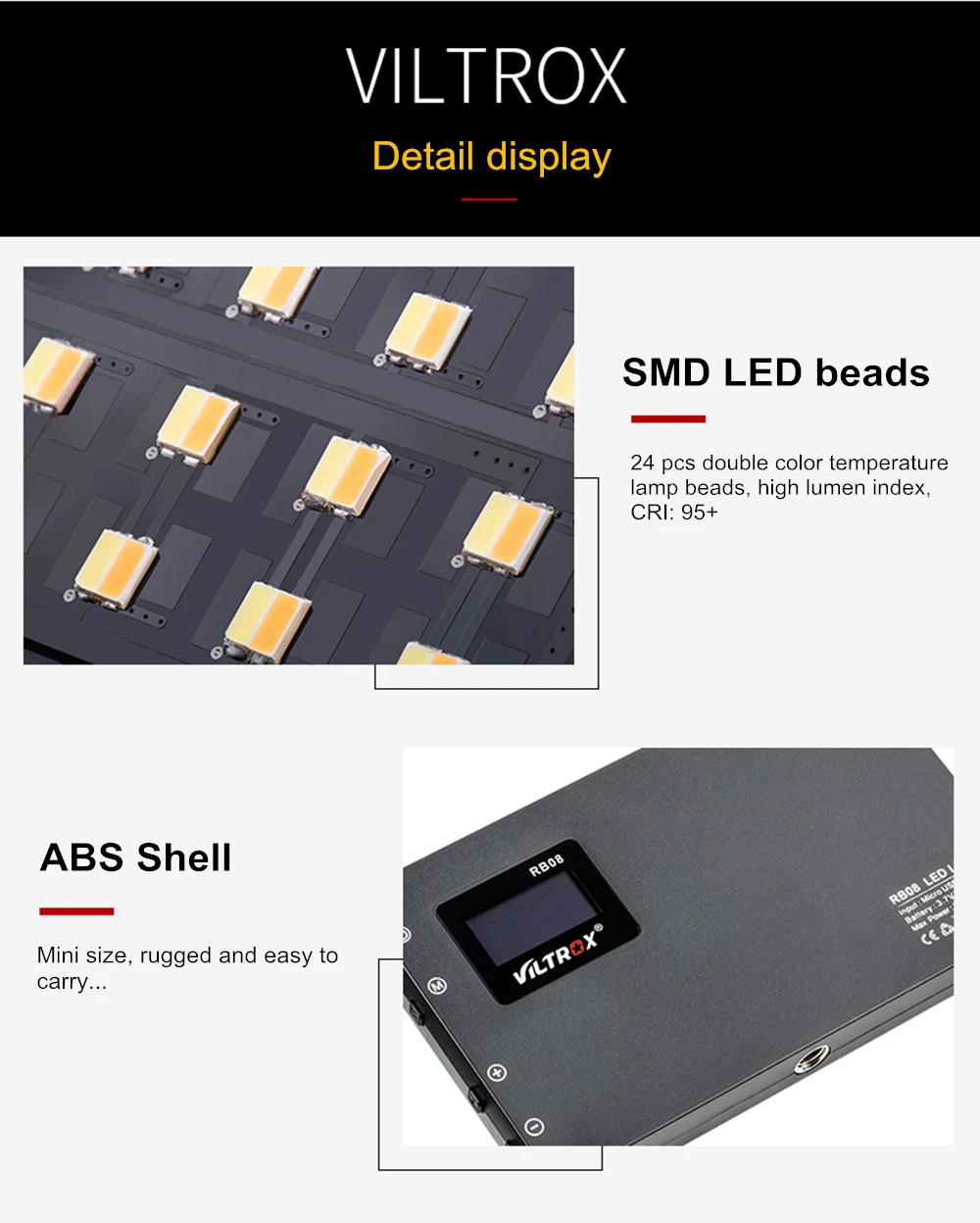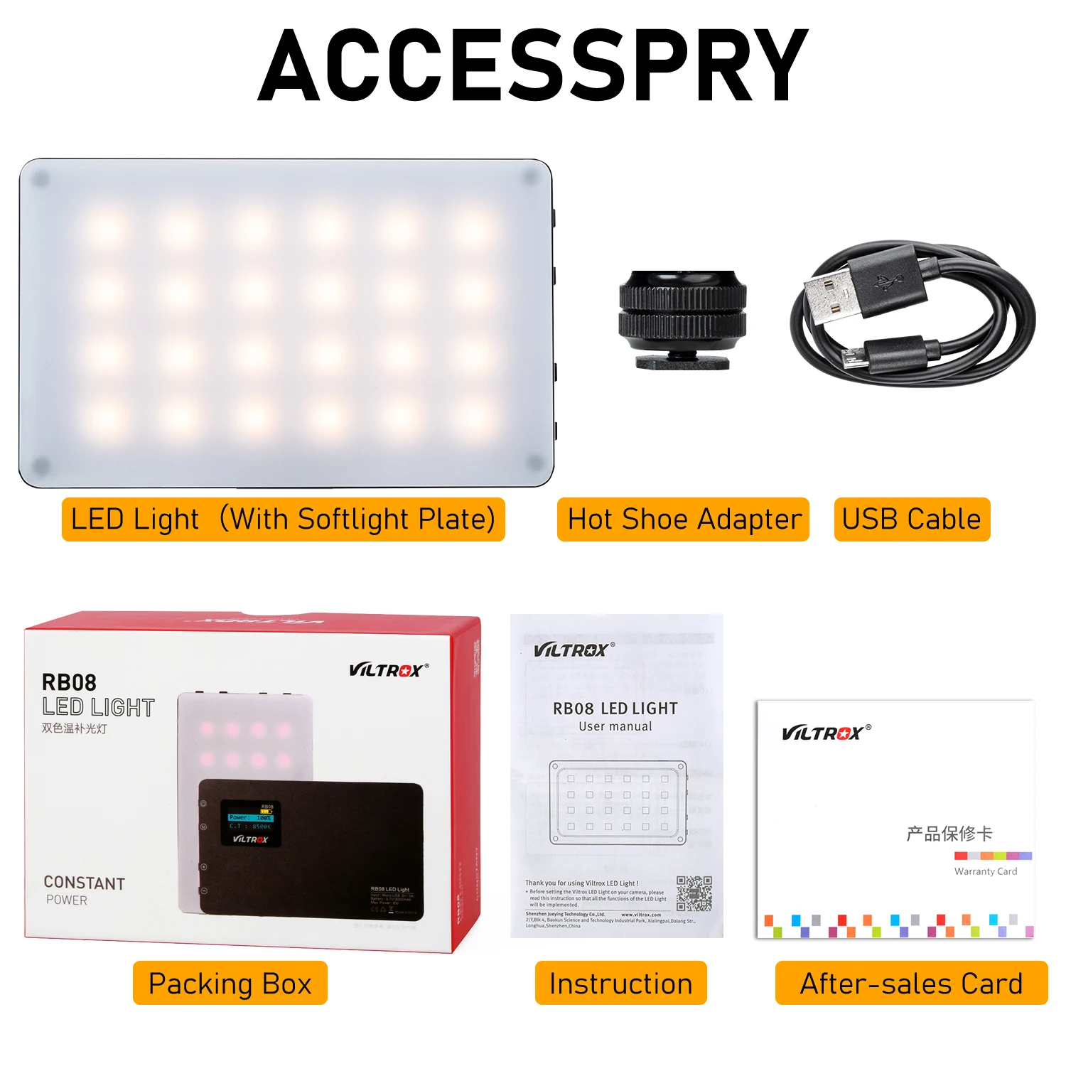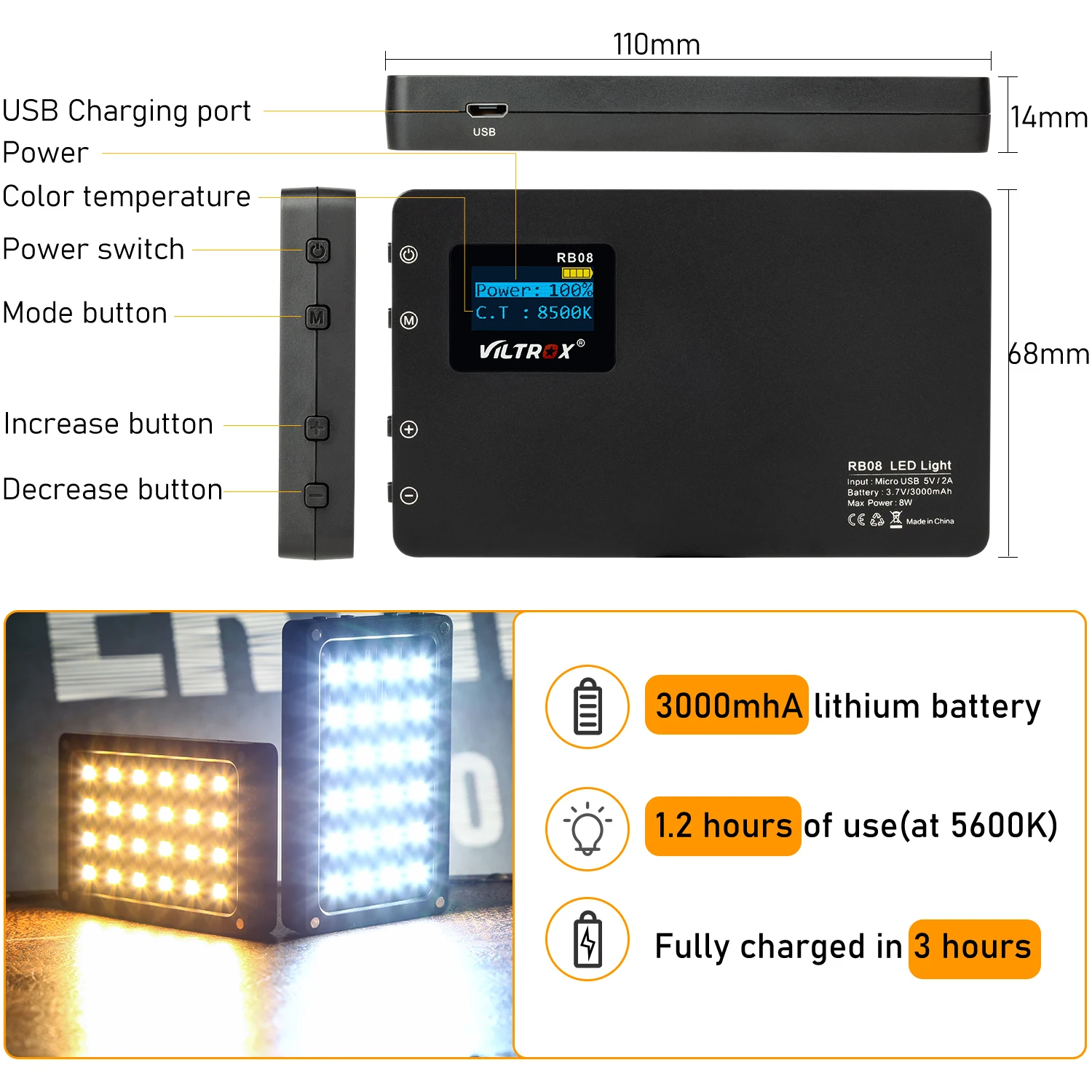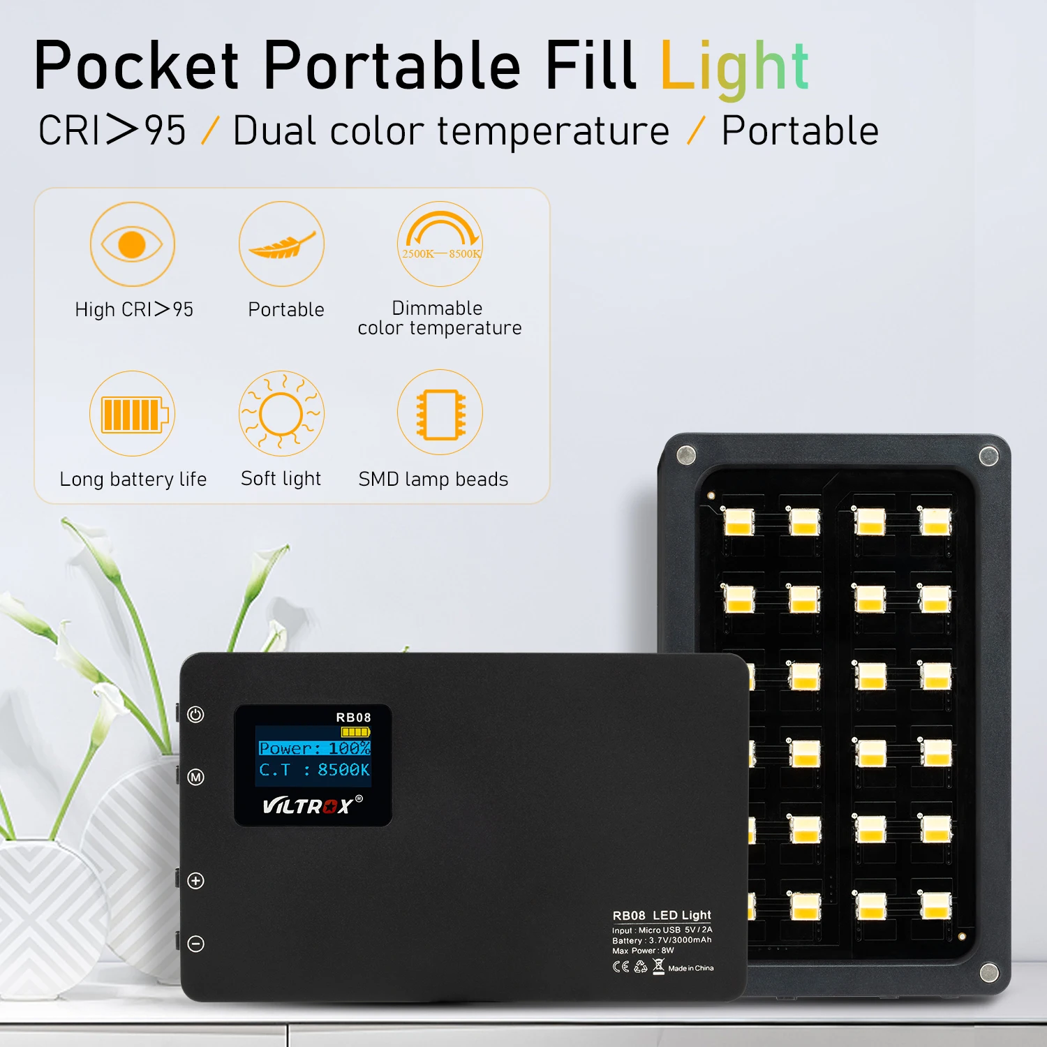Светодиодный мини-светильник Viltrox RB08 для селфи, портативный светильник для телефона, световая панель с заполнением 2500K 8500K для камеры, съемки в студии