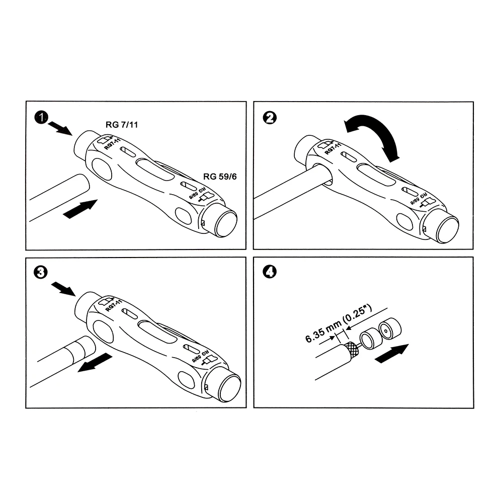 Зачистки Длина: зачистки Длина является предустановленных до 6,35 мм (0,25 ")