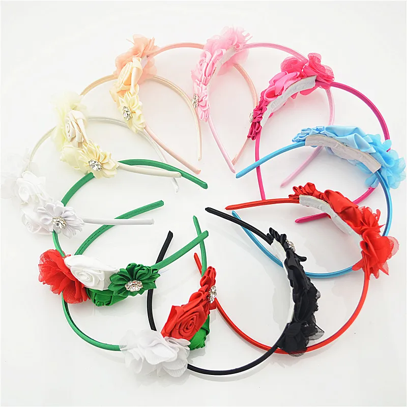 Ободок для волос детский, стразы с цветочным бантом, 10 цветов, большие цветы розы