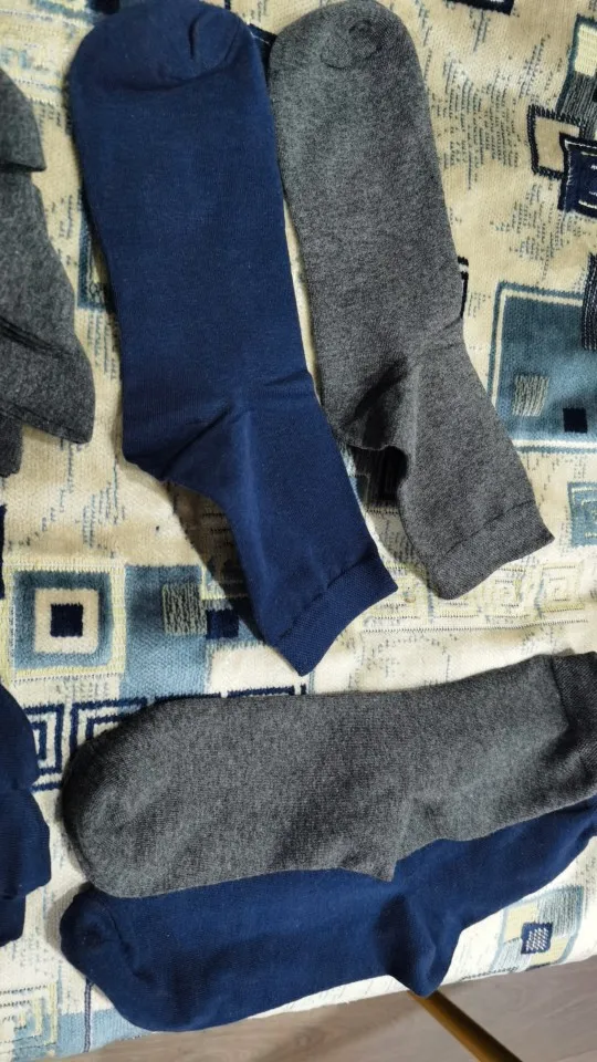 Носочки пришли быстро, до Тюмени около 2 недель. Трек отслеживался полностью. Хорошо упакованы. Носочки тянутся, но лучше брать чуть больше на размер немного маломерят. На фотографиях видно что сделаны аккуратно. Взяла для сыночков и мужа разных цветов. Цвета сочные. Мне очень понравились серые (их несколько оттенков), одну парочку белых примерила на себя. Оставлю себе. Крепкие, хлопок и немного синтетики. Носочки не пахнут, ноги в них не потеют. Позже напишу как ведут себя после стирки. Рекомендую для носки на каждый день.
