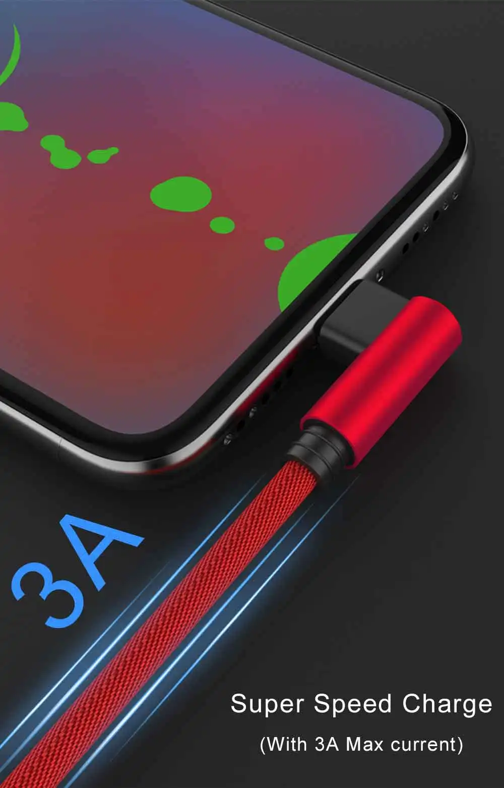 Нейлоновый кабель Micro USB 90 градусов, 3 А, быстрое зарядное устр...