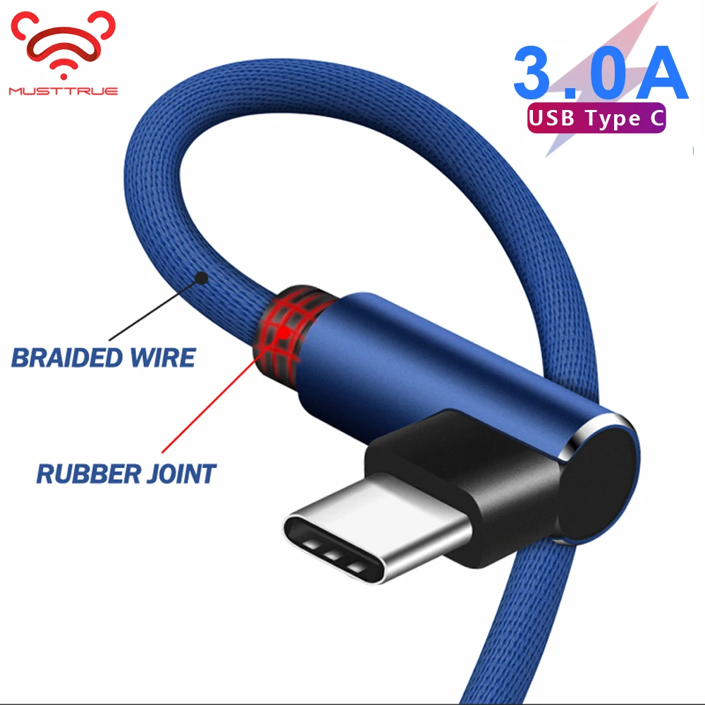 Кабель MUSTTRUE USB C для Samsung S8 S9 Type C кабель для быстрой зарядки для Xiaomi redmi note 7 USB-C кабель для передачи данных 90 градусов кабель type-c