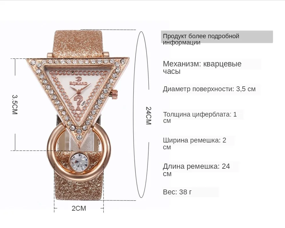 Часы женские кварцевые с матовым ремешком, 2021 циферблат, с треугольником стразами
