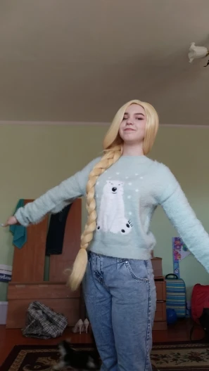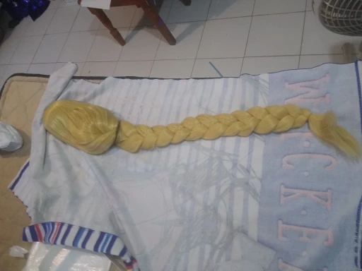 Только взяв в руки -парик распался,из косы сверху выпали пряди и он уже потерял вид! Я брала его на Снегурочку и переплетать Новый парик не рискнула так и пришлось работать с торчащими со всех сторон клоками