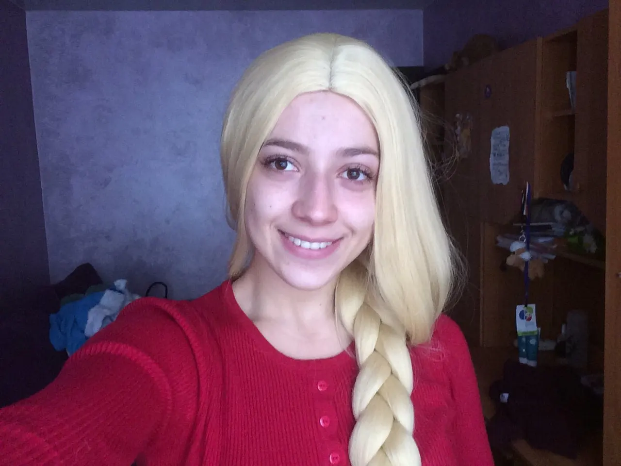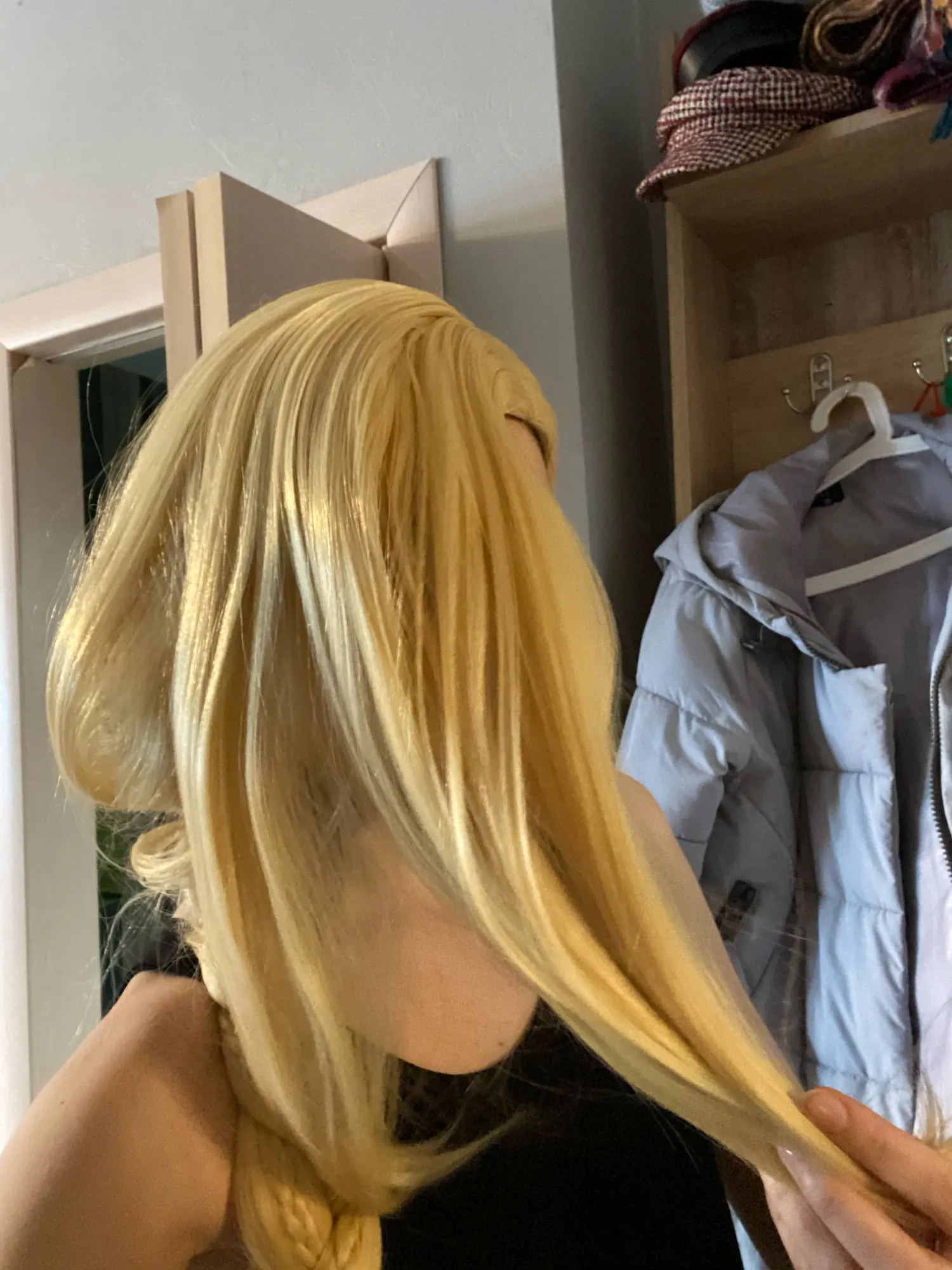 Парик густой, хороший. Передние пряди вылезают и выглядит это странно. Я буду переплетать парик и делать более тугую косу
