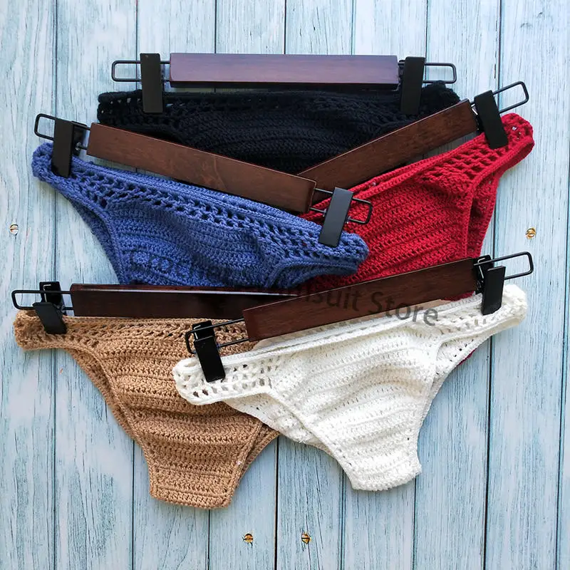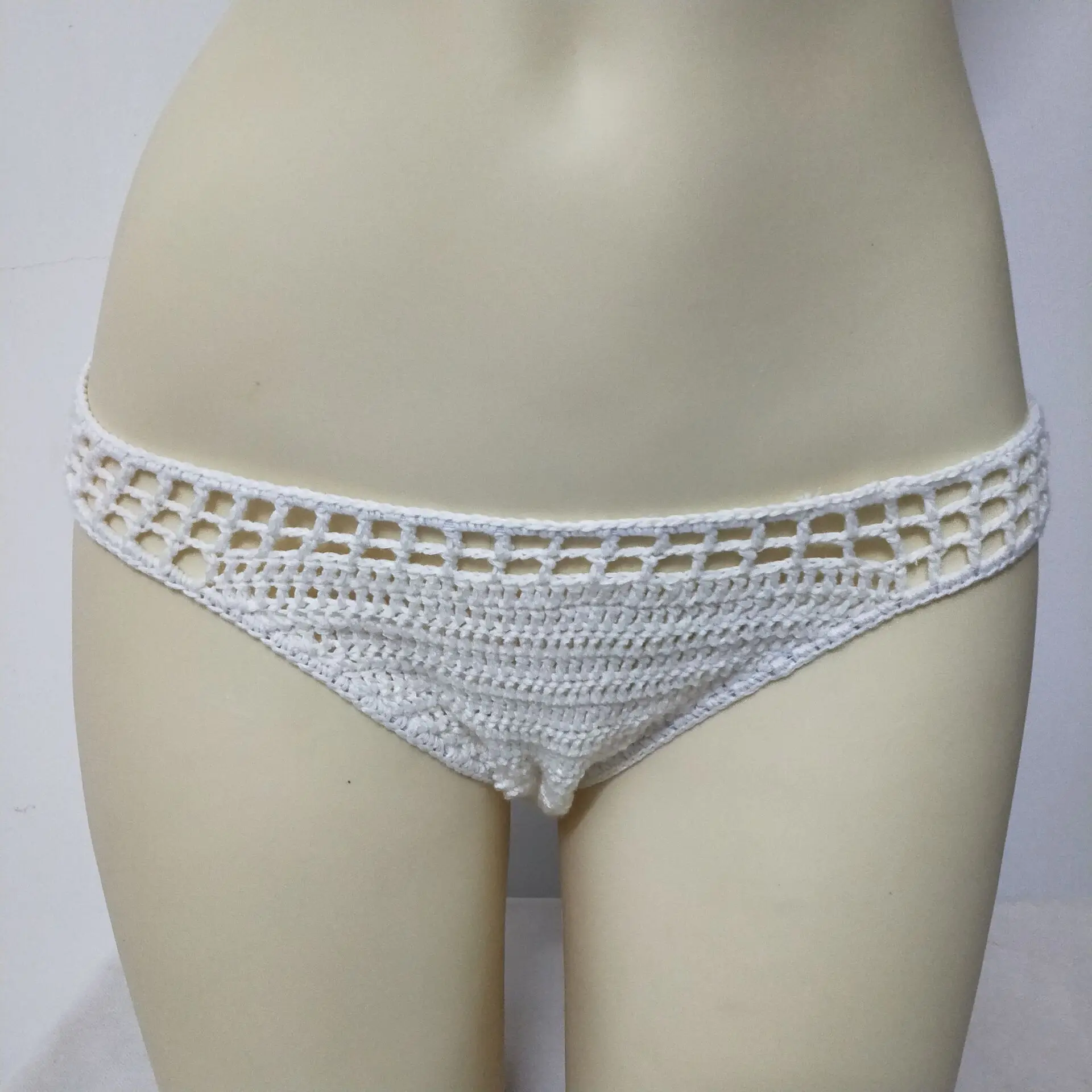Женские сексуальные вязаные трусы бикини в стиле бохо, стринги, купальник ручной работы, вязаные шорты