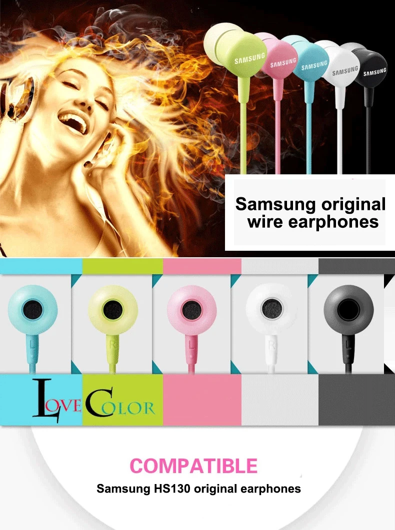 Параметры продукта: 1. Бренд продукта: Samsung HS130 2. Цвет изделия: белый/черный/розовый/синий 3. Способ ношения: в ухе 4. Штекера наушников: 3,5 мм 5. Микрофон: Да 6. Проводной контроллер: Да 7. Провод для наушников: 1,2 м 8. Вес изделия: 13 г Посылка: 1 * наушники + 1 * Руководство (белый/черный/розовый/синий)